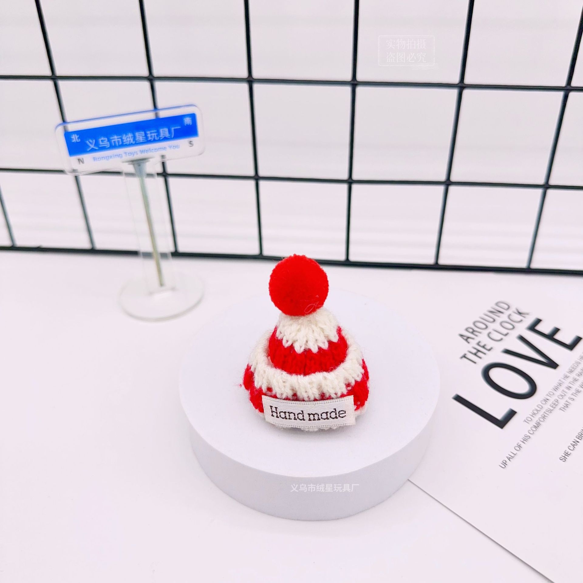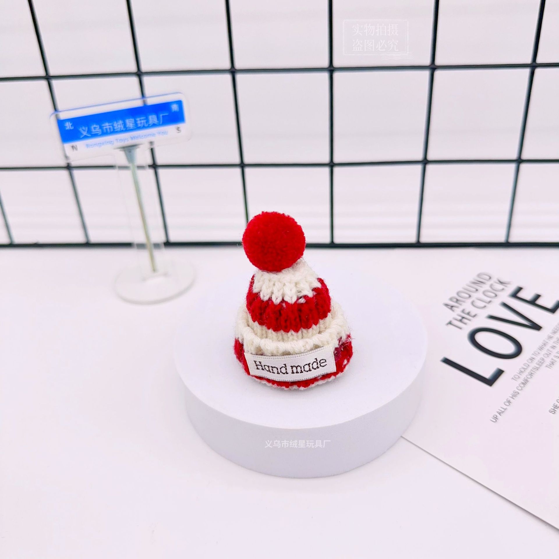 rx081 fur ball knitted hat-red and white