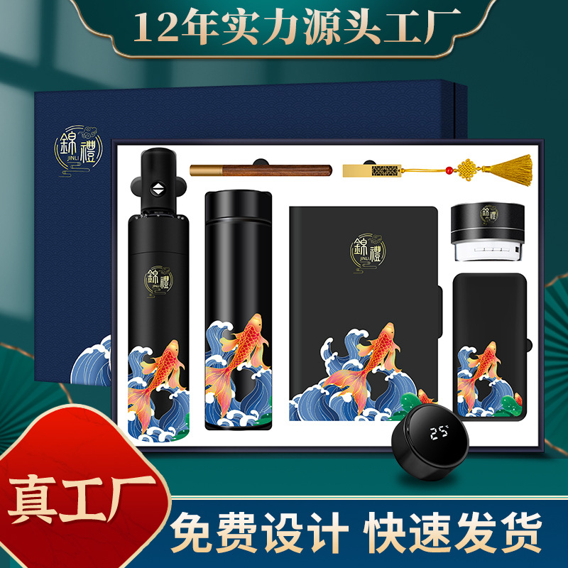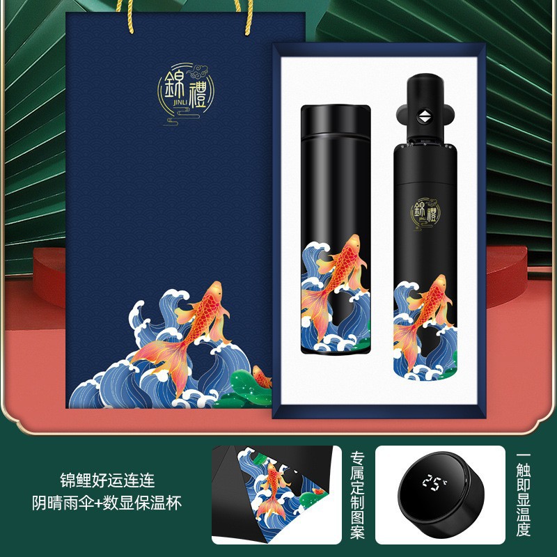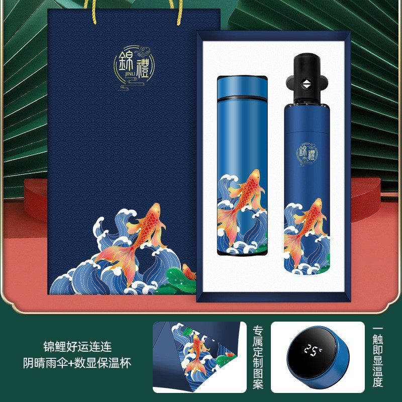 4-piece set-blue [temperature control cup + koi + pen + koi umbrella]]