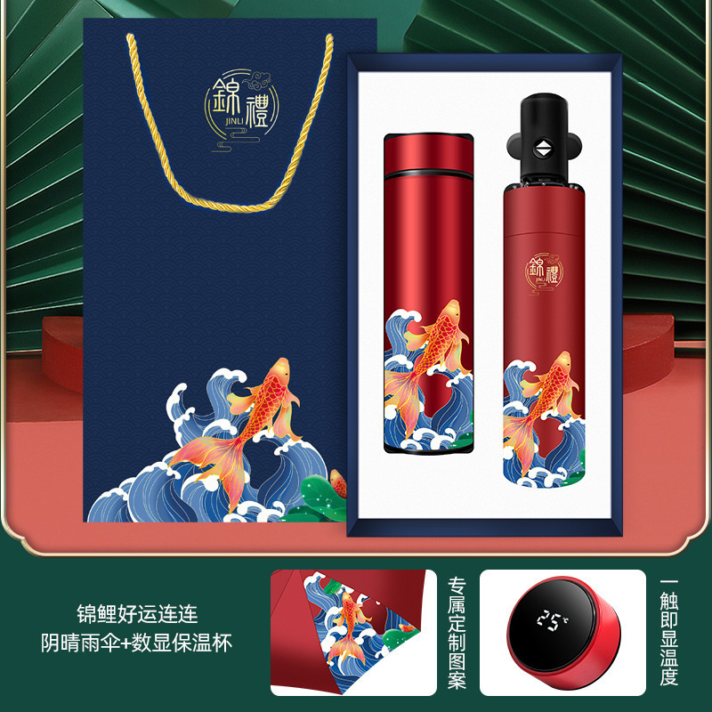 4-piece set-red [temperature control cup + koi + pen + koi umbrella]]