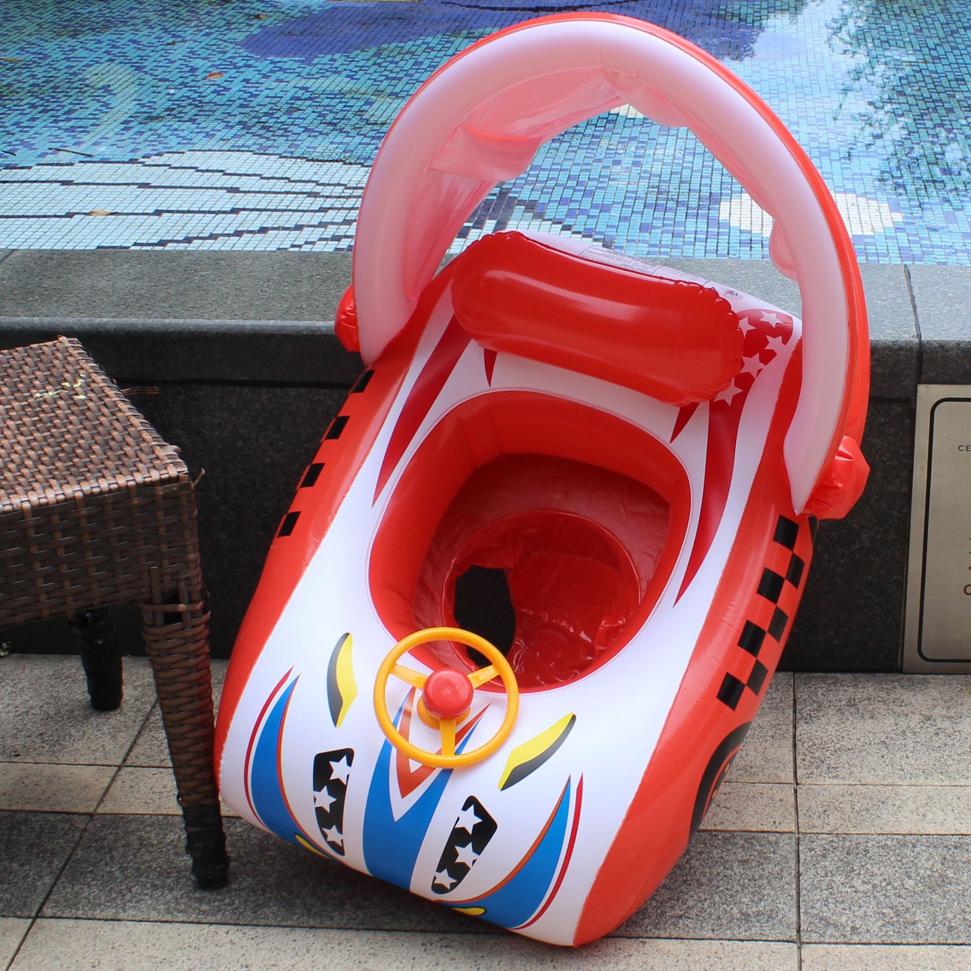 abc new red racing boat with awning