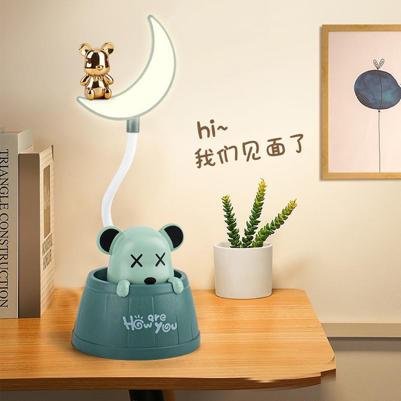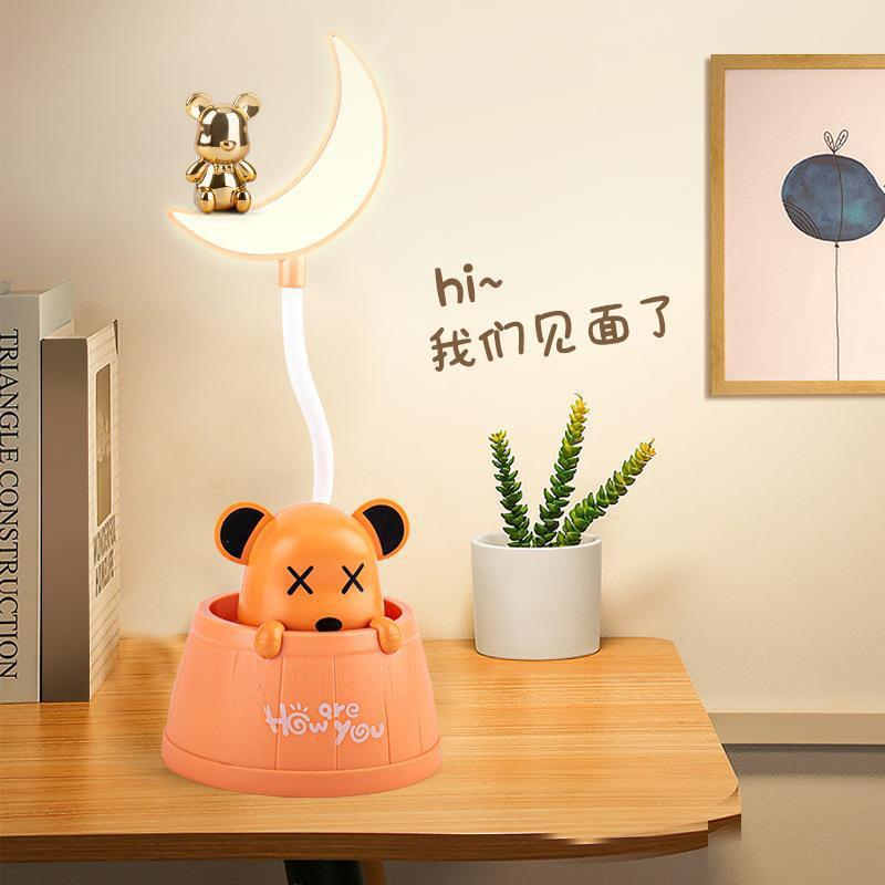 【Product Name】Cute Bear Wooden Bucket Moon LED Charging Night Light