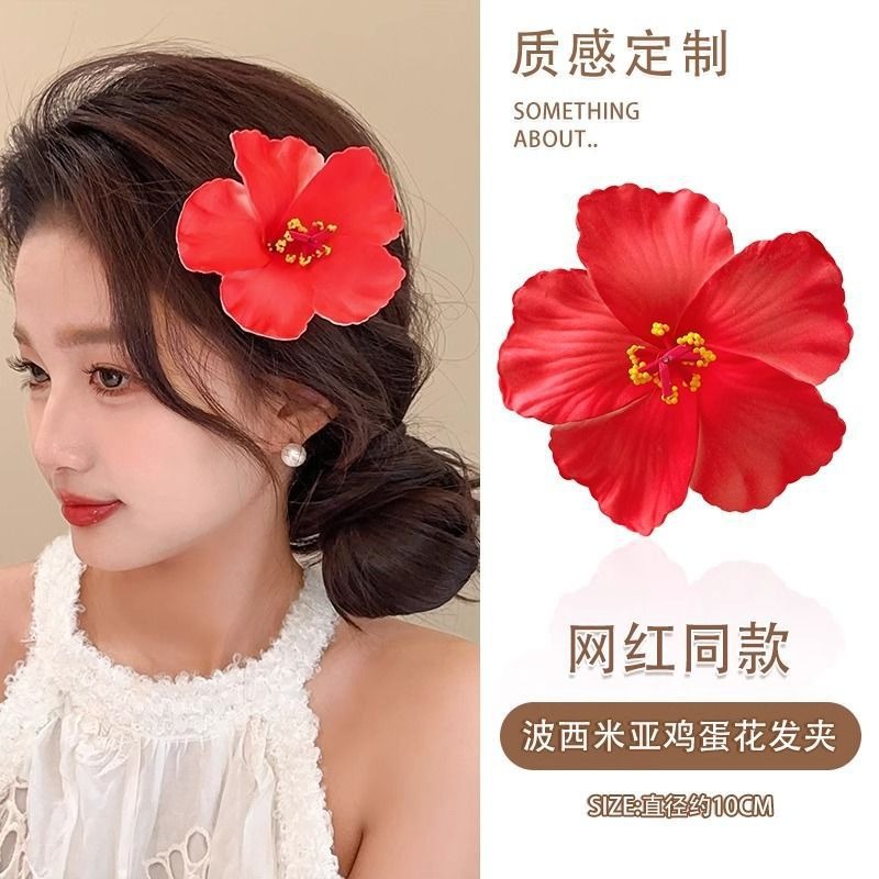 red flower barrettes