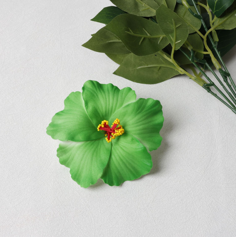 green flower barrettes