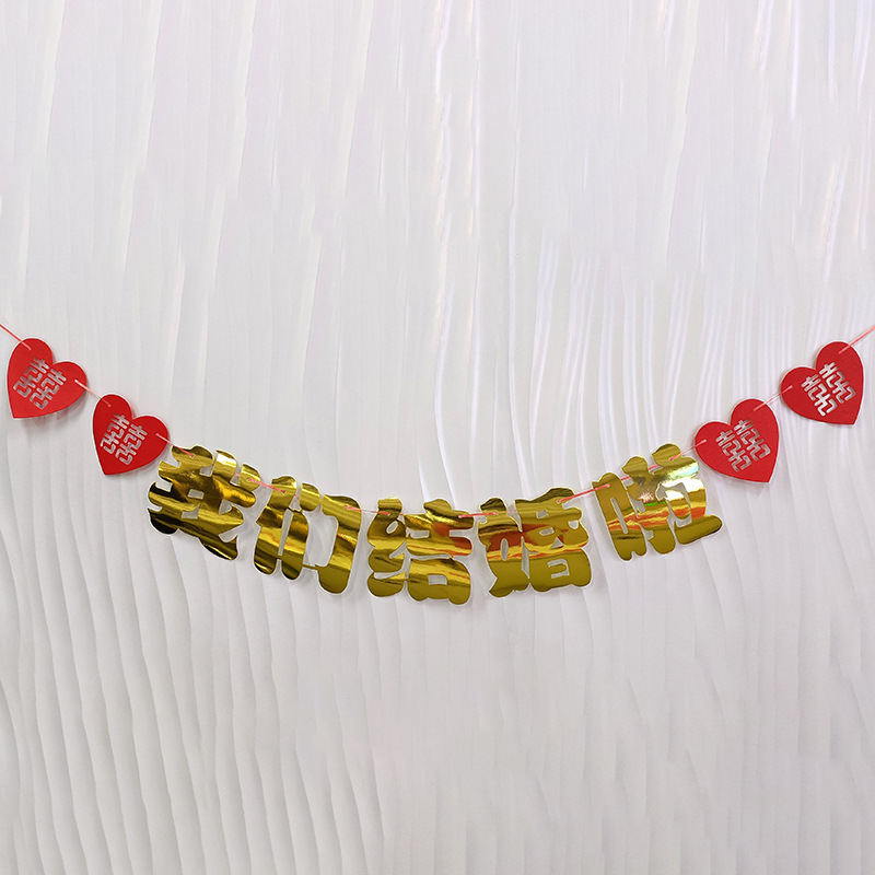 we are married, golden hanging flag