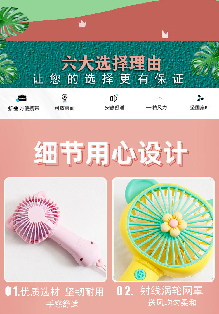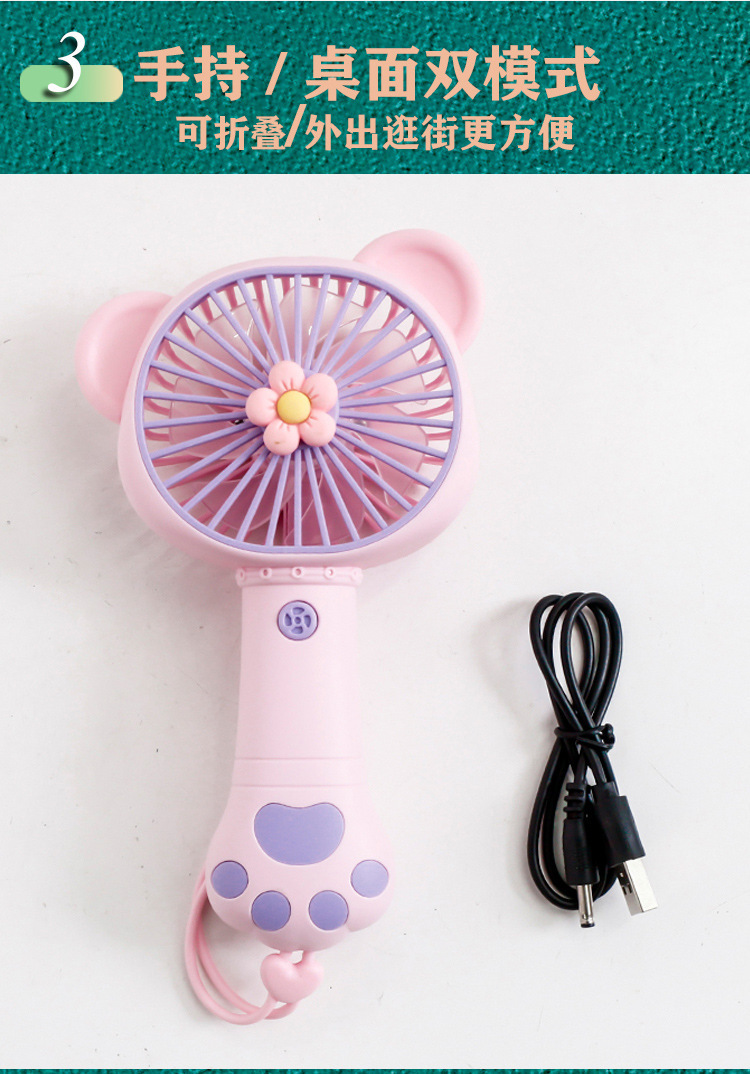 cartoon animal candy color cat's paw girl heart handheld usb rechargeable fan outdoor rope holding portable pocket fan