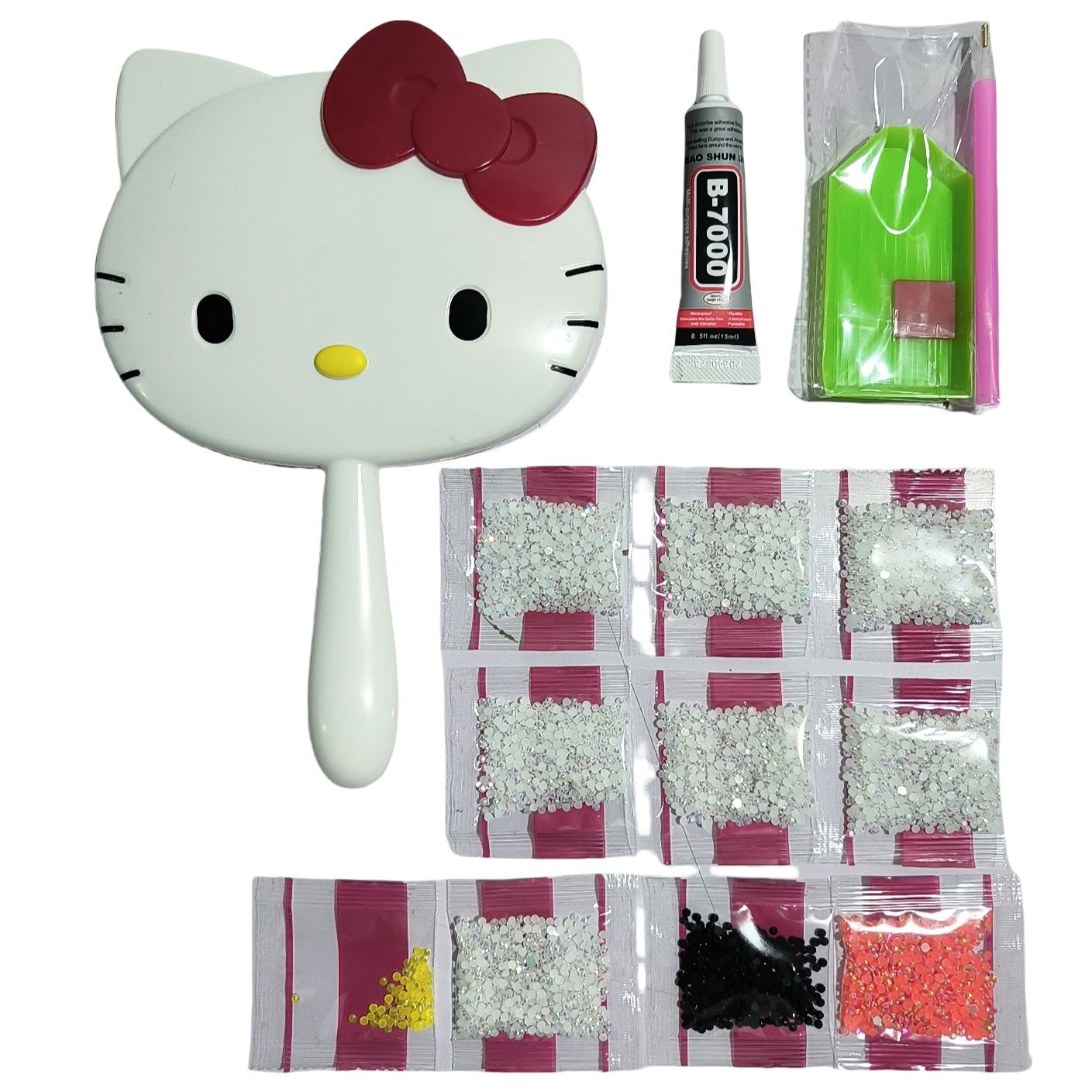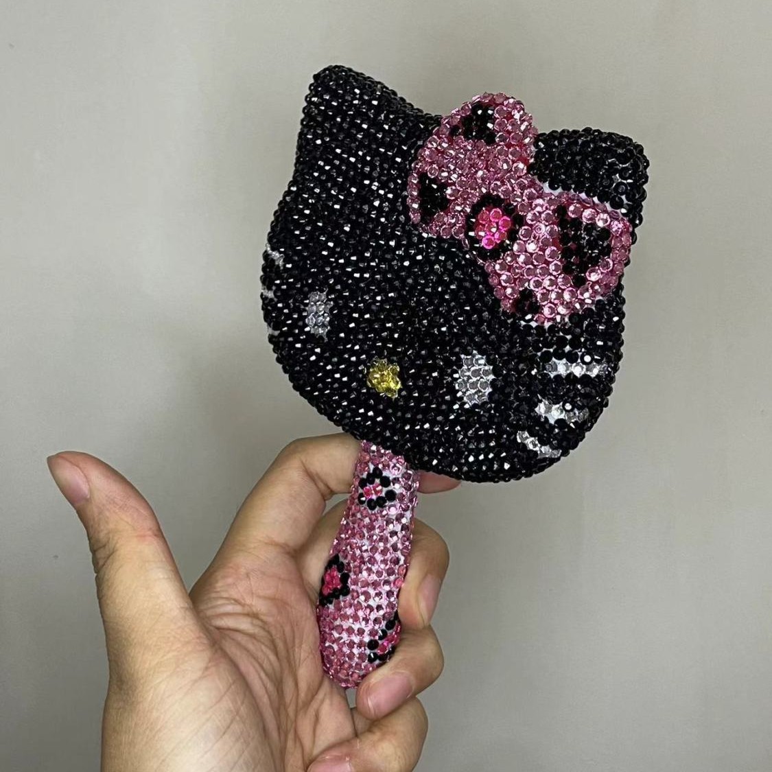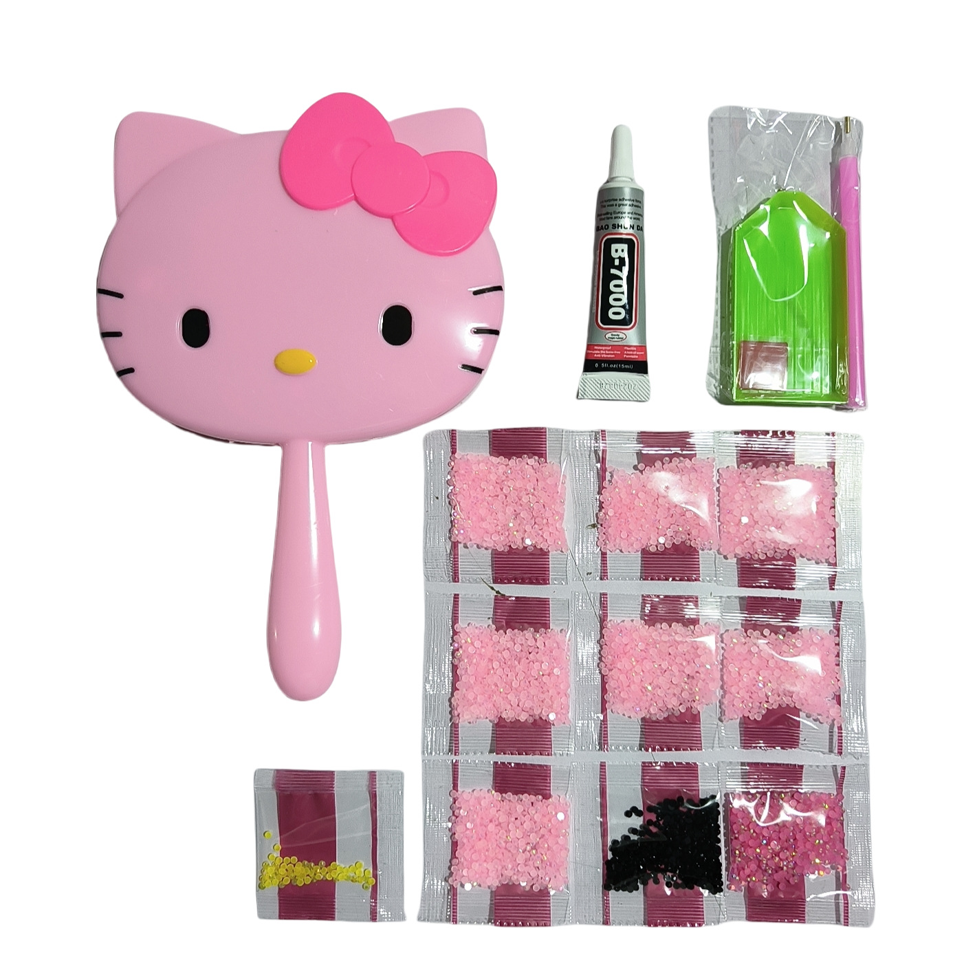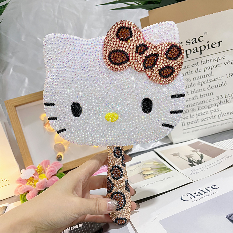 hellokitty mirror rhinestone diy diamond-embedded cosmetic mirror trending cartoon handheld mirror creative hand-hold mirror