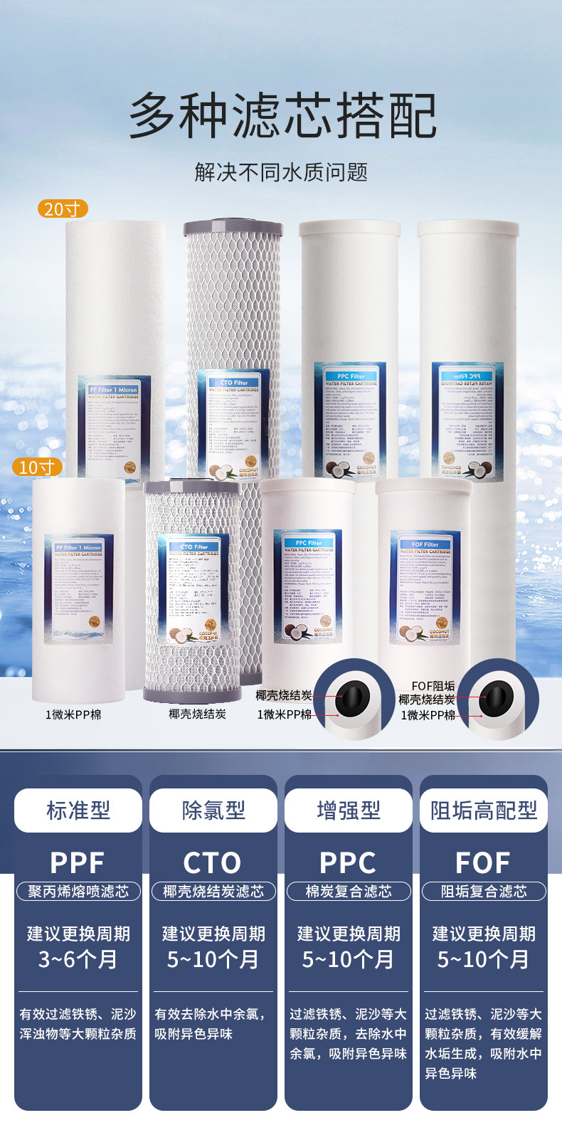 10-inch double grade (cotton + anti-scale carbon)