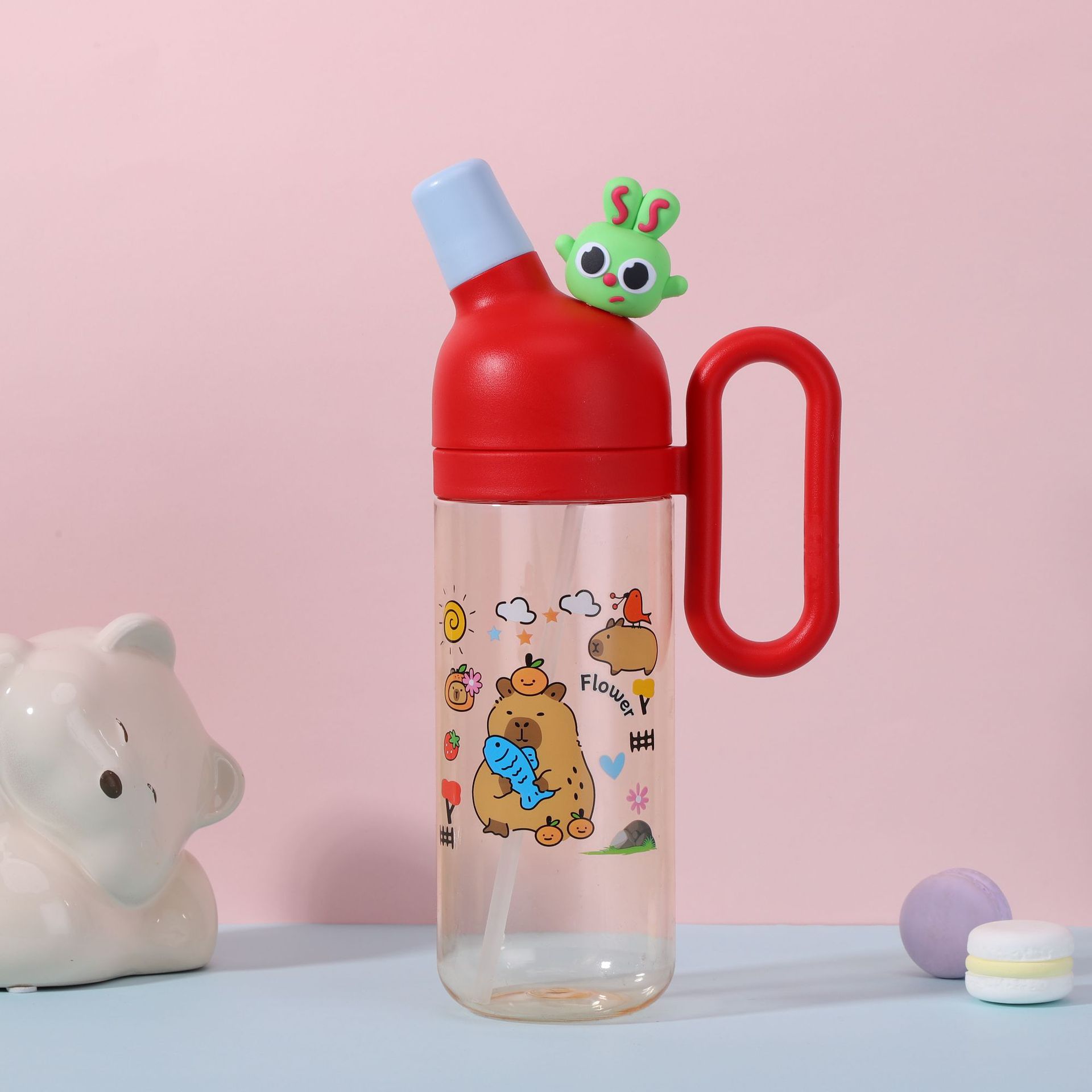 popular cartoon doll plastic cup ursula doll straw portable children good-looking handle school portable cup