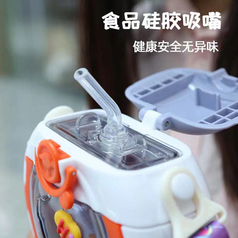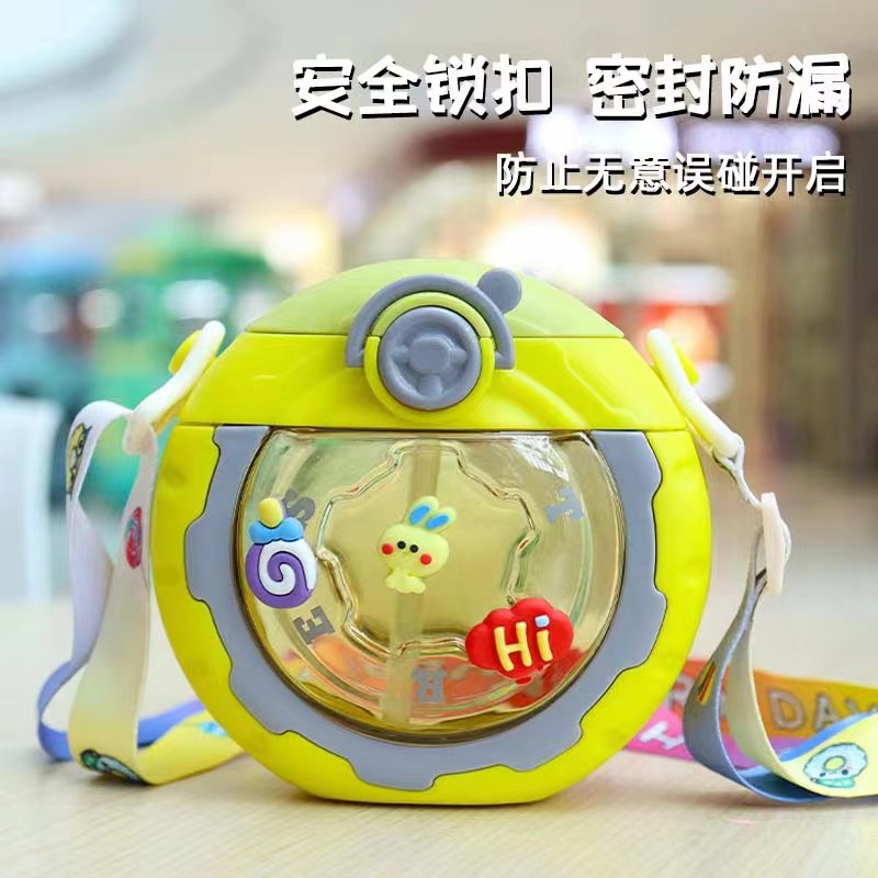 disc creative 3d decoration cute children's water cup portable with rope handle water cup bounce cover plastic cup with straw