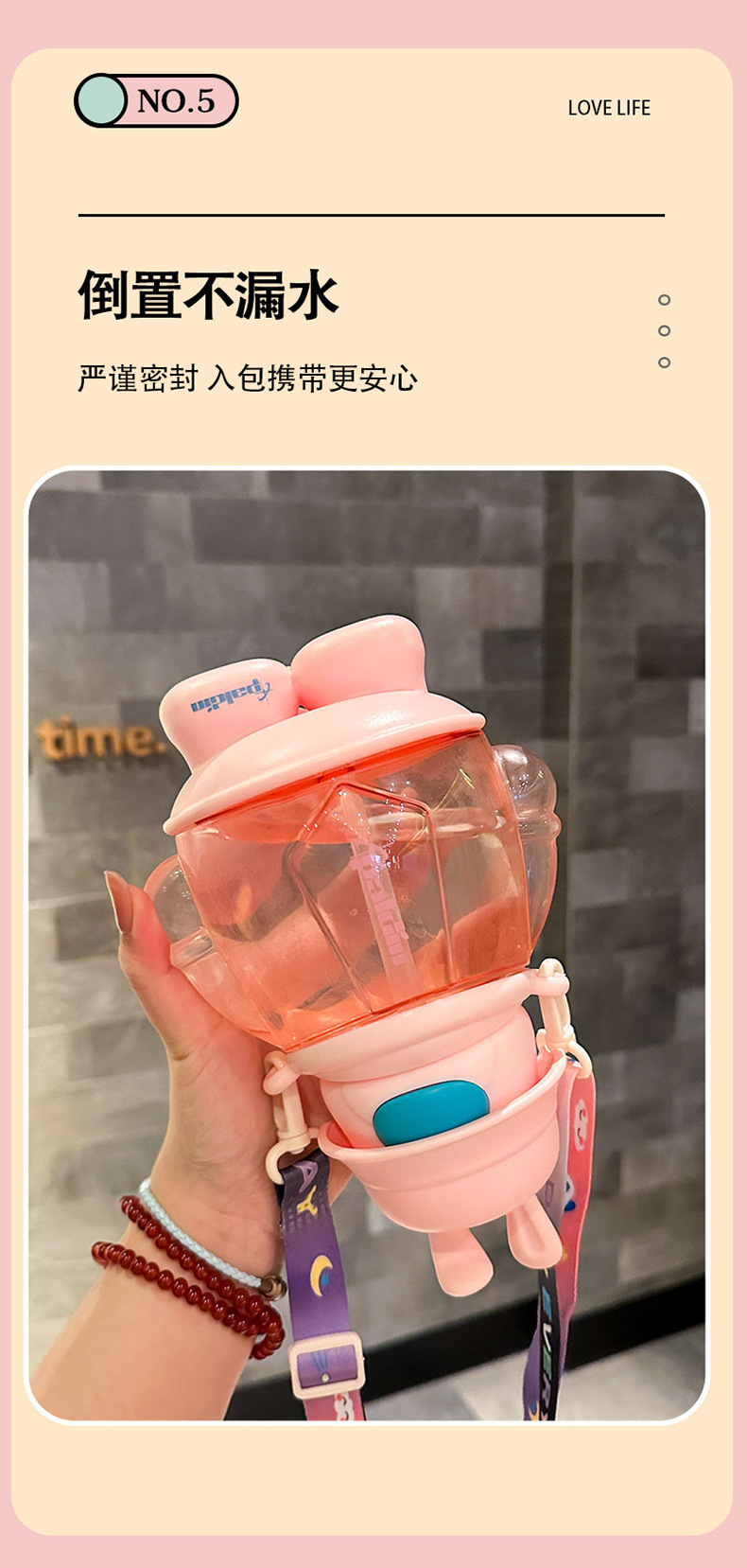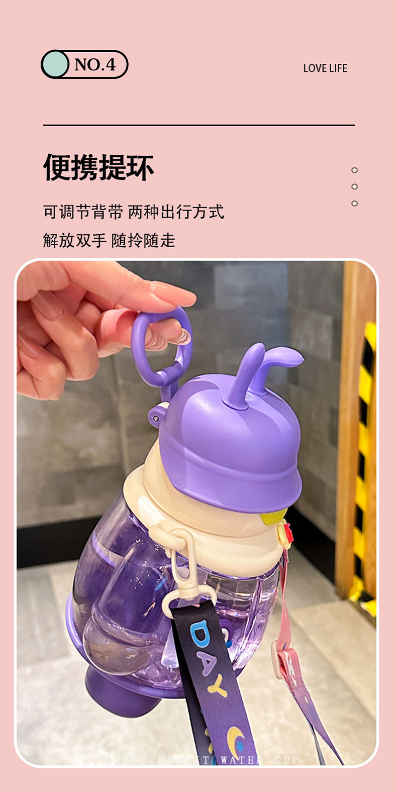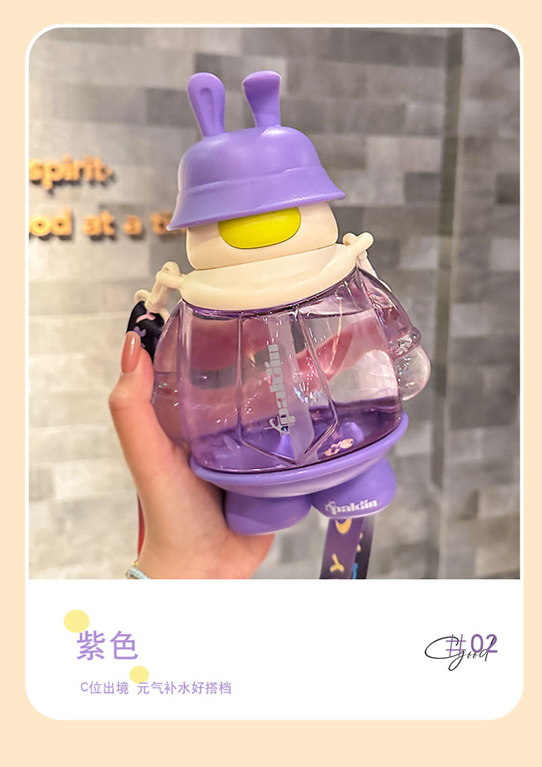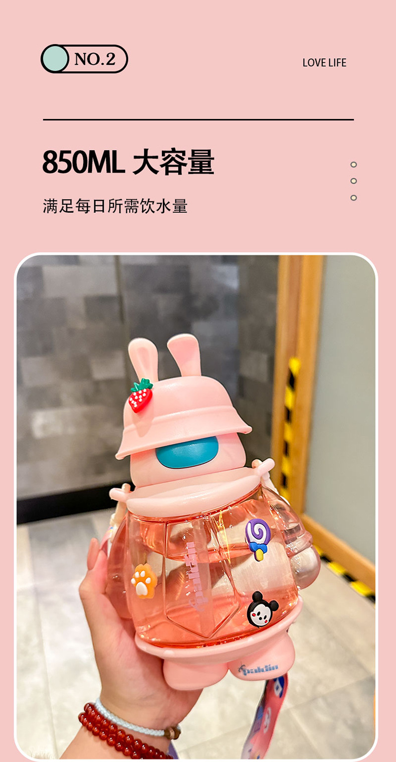cute cartoon rabbit cup sticker cute strap portable bounce cover plastic sippy cup water cup