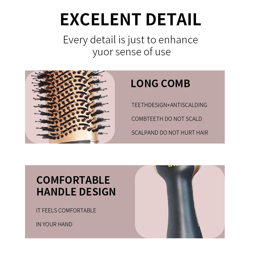 E-mail:【Hot Air Brush】One-click solution for frizzy and dry hair, making it soft and shiny! Innovative hot air technology quickly dries hair while styling, saying goodbye to the tedious operations of traditional hair dryers and combs. Negative ion care, reducing static electricity, locking in moisture, making hair healthier. Lightweight and portable, suitable for travel and home use. Frequency: 50-60Hz Power: 1200W Voltage: 110V-220V Box size: 38*11*9.5 Case size: 58.5*39*57 Gross weight: 18 Net weight: 17"