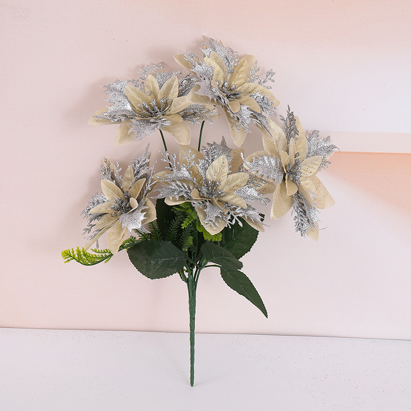in stock 5 christmas flowers light gold and silver