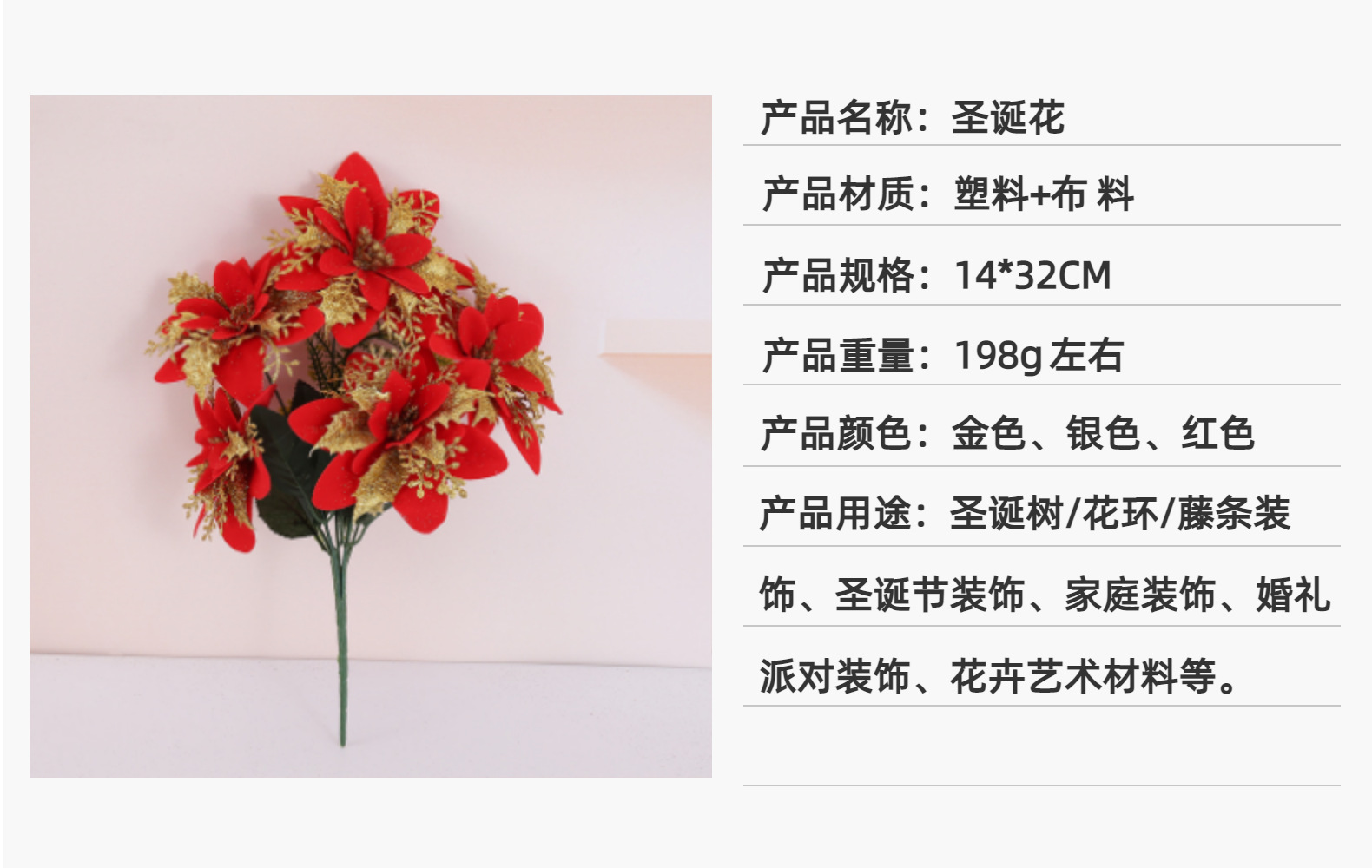 in stock 5 christmas flowers gold plus red