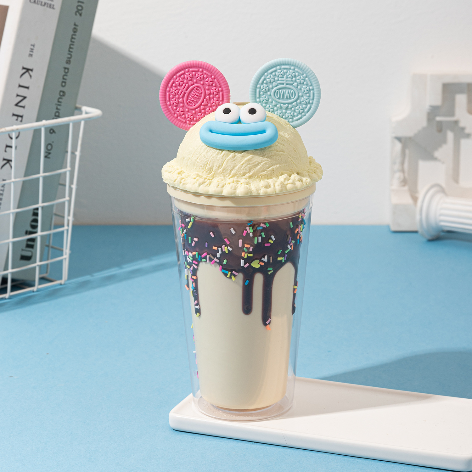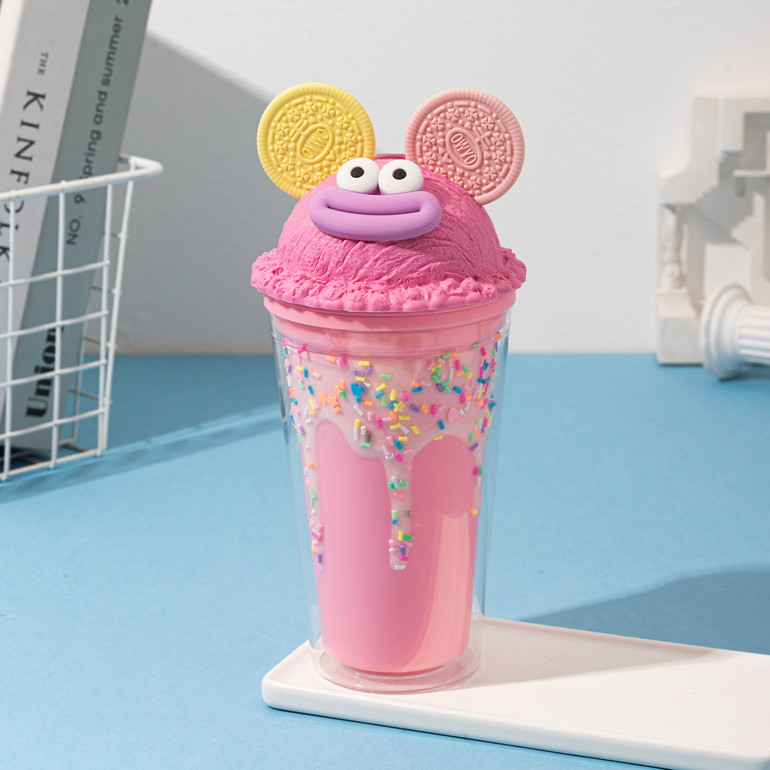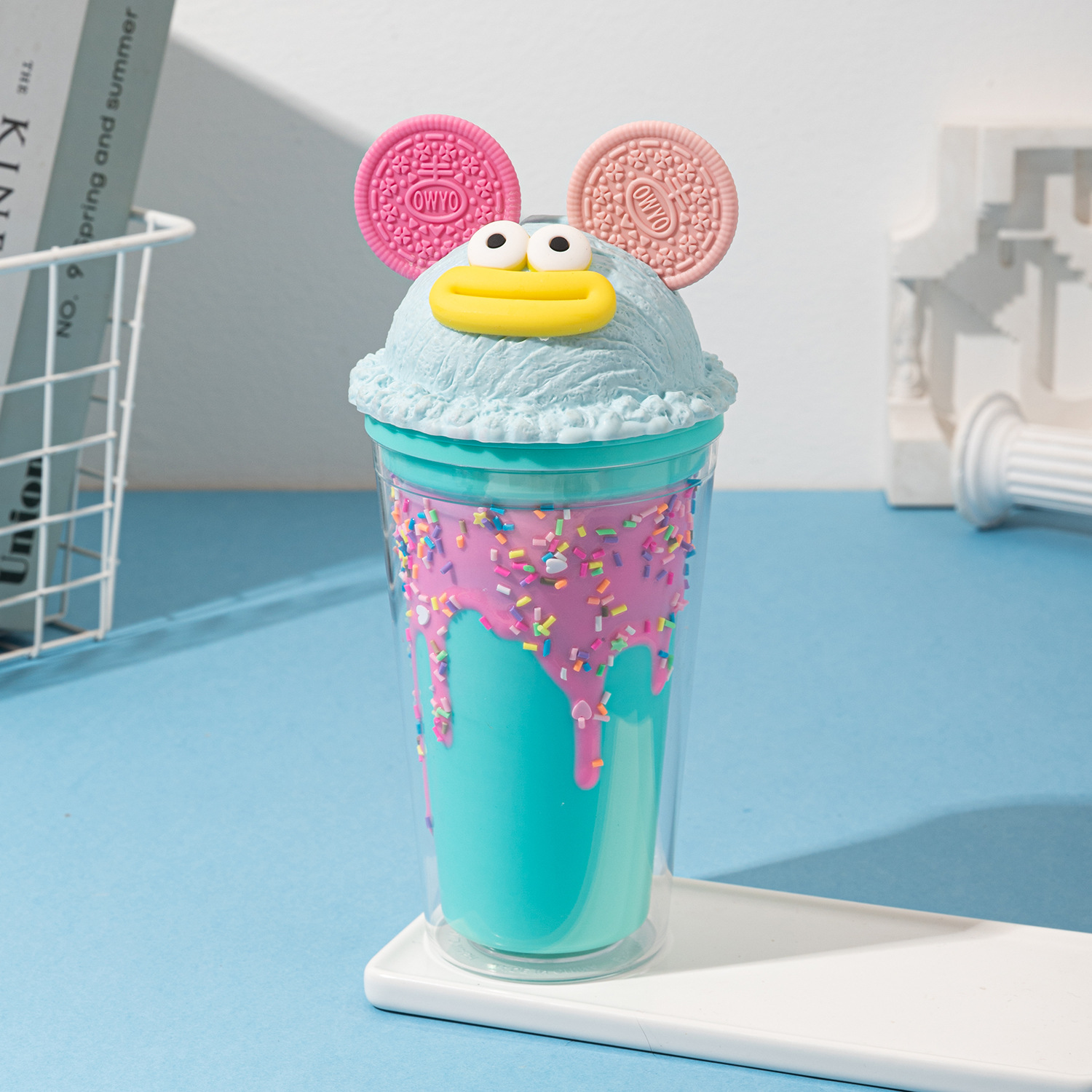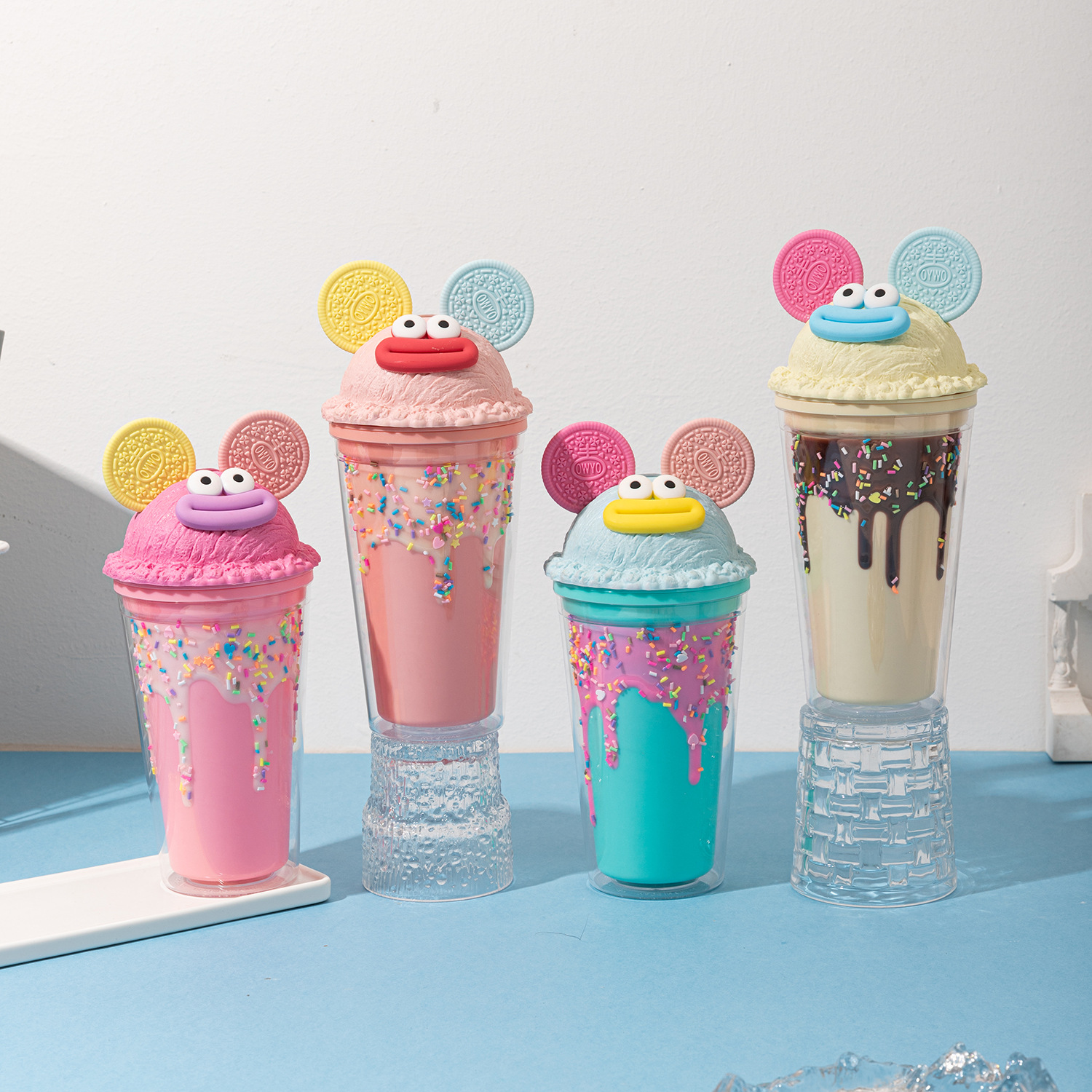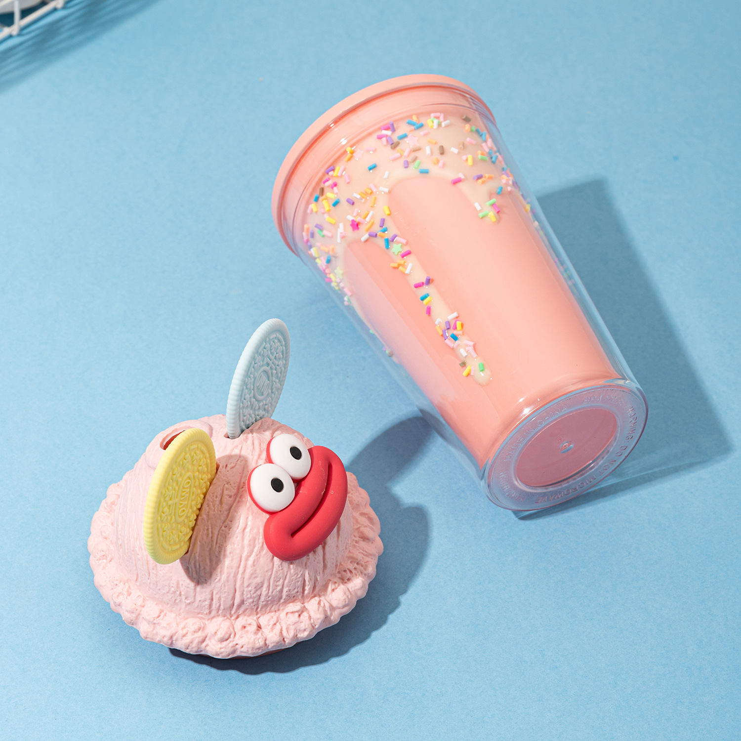 sausage mouth plastic sippy cup couple water cup wholesale good-looking ice cream double cream ice cup