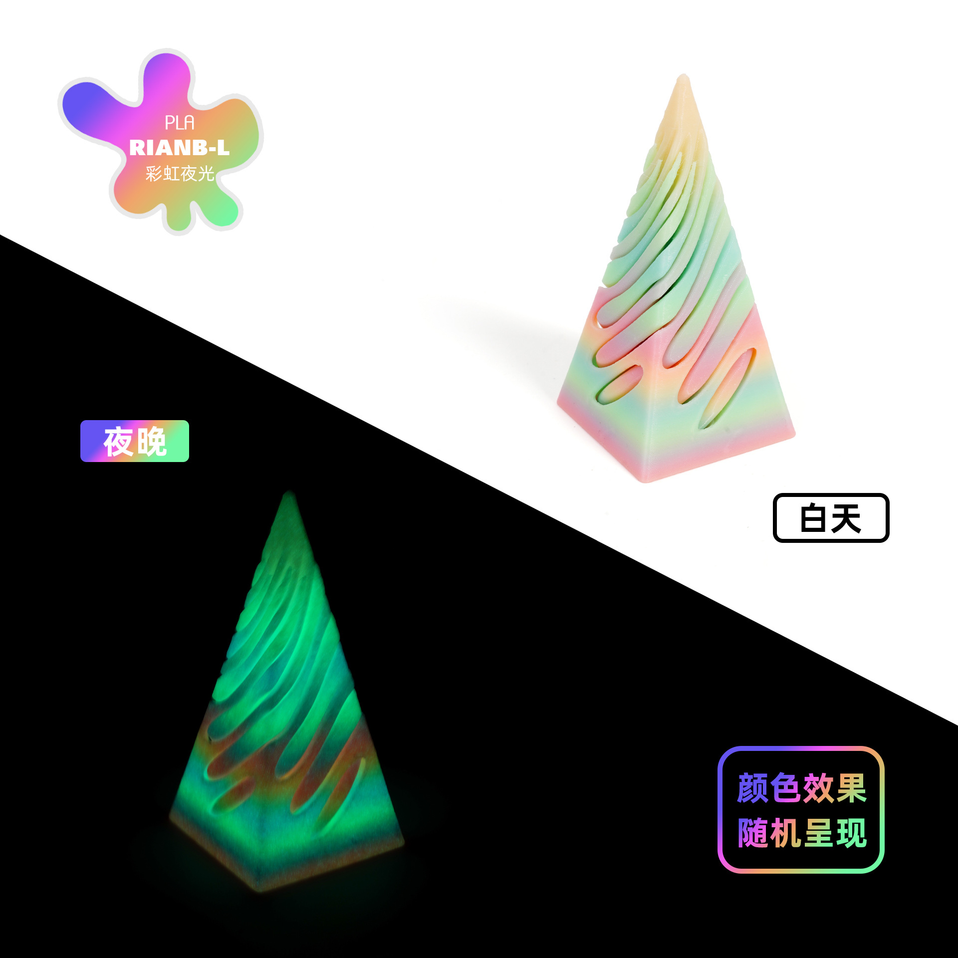 [pyramid] spinning music-[luminous] rainbow (random color effect)-daytime rainbow