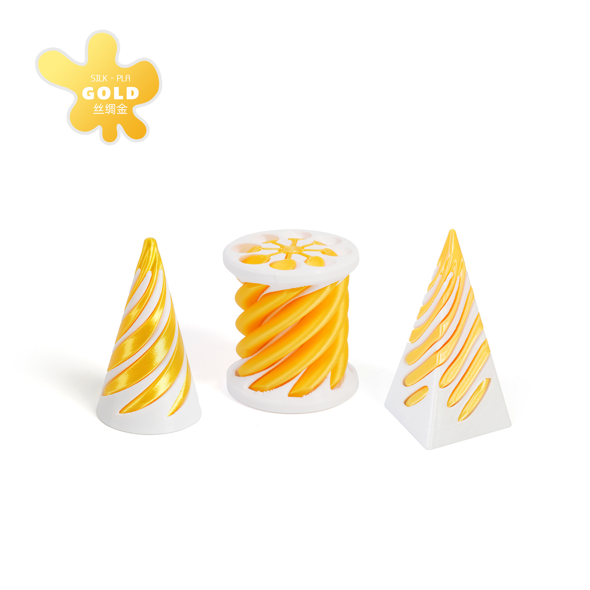 [cone + cylinder + pyramid] spinning music-silk gold-white