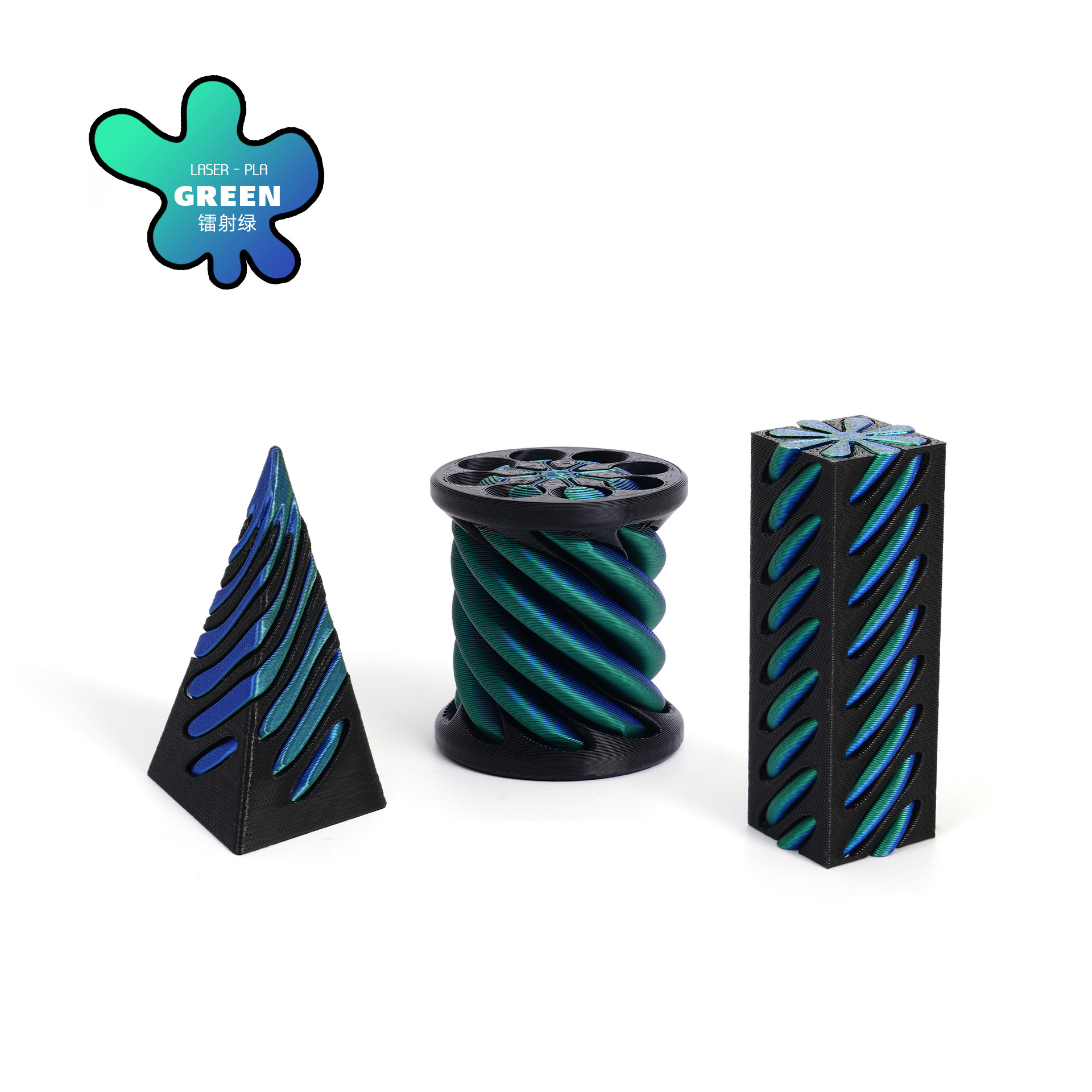 [square column + cylinder + pyramid] spinning music-laser blue green-black