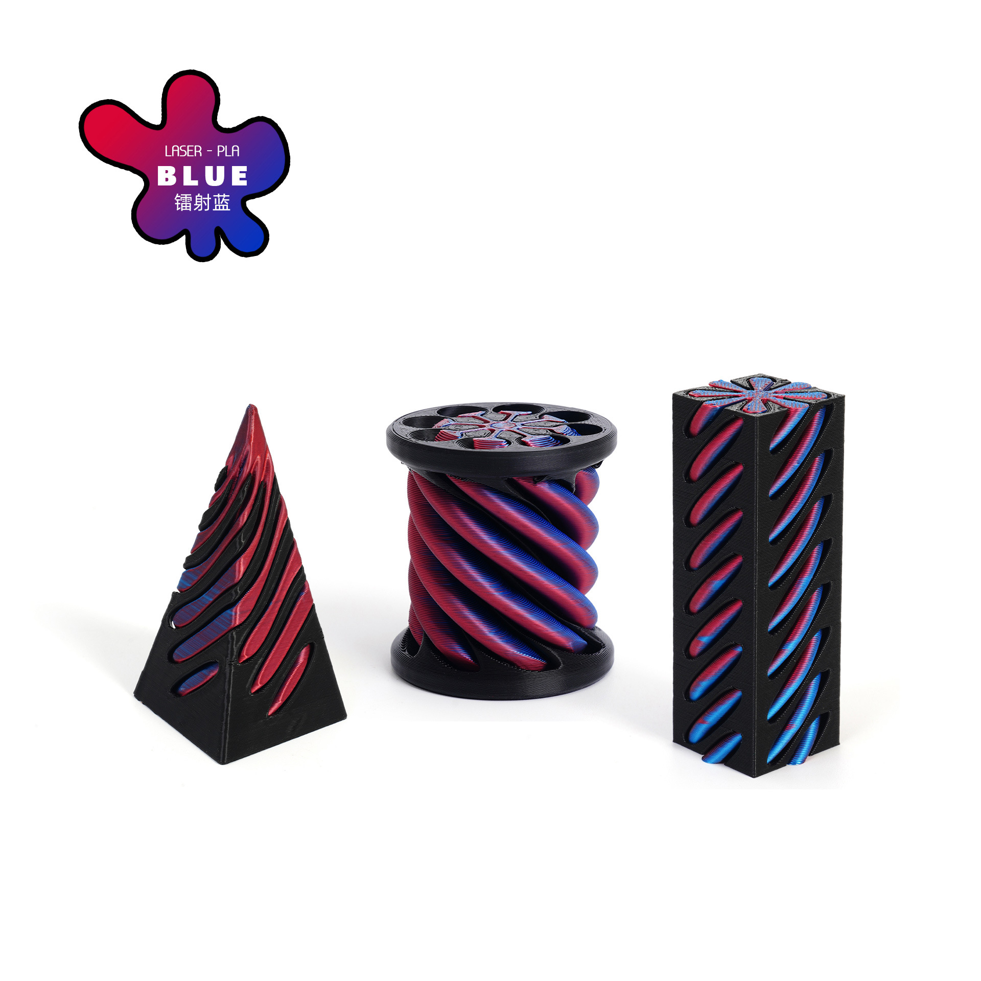 [square column + cylinder + pyramid] spinning music-laser red blue-black