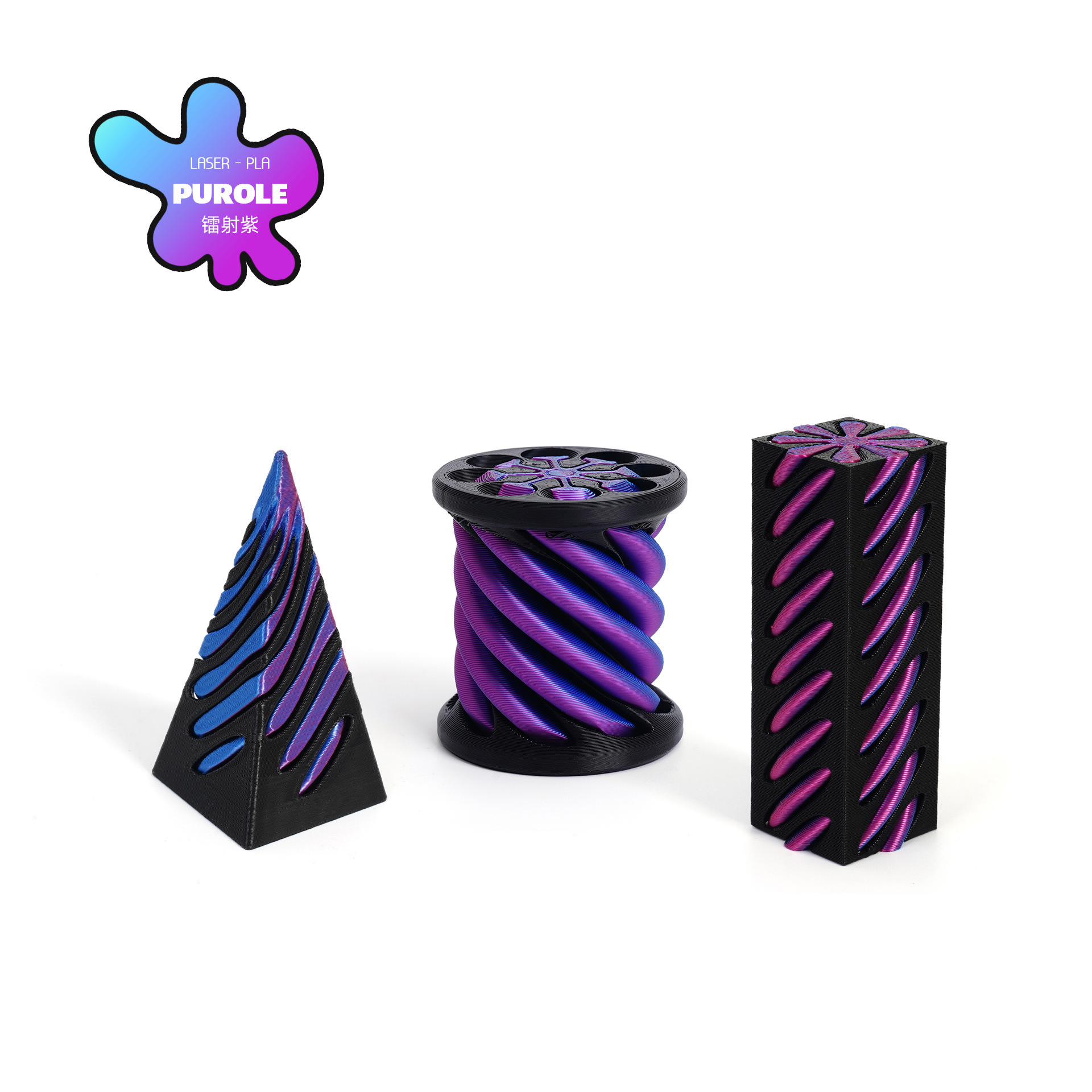 [square column + cylinder + pyramid] spinning music-laser blue purple-black