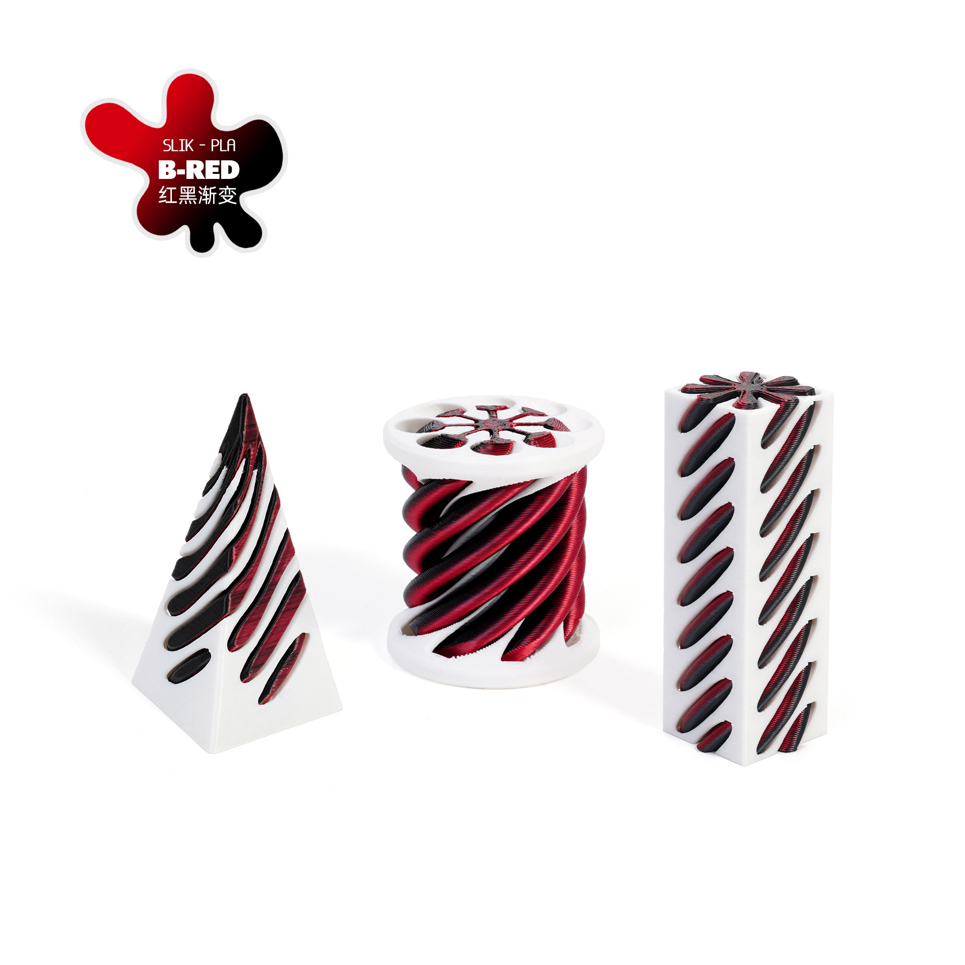 [square column + cylinder + pyramid] spinning music-laser red black-white