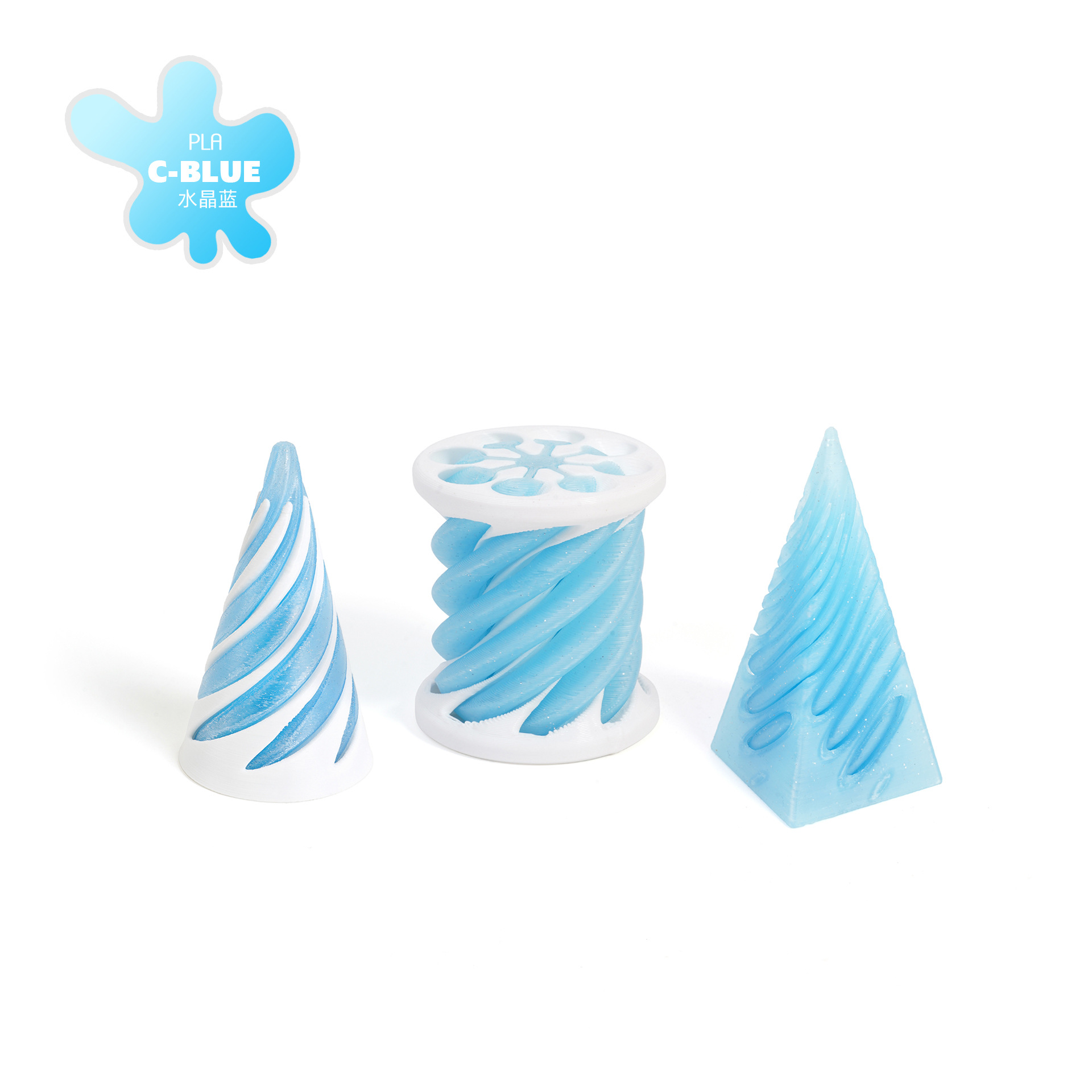 [cone + cylinder + pyramid] spinning music-crystal blue-white