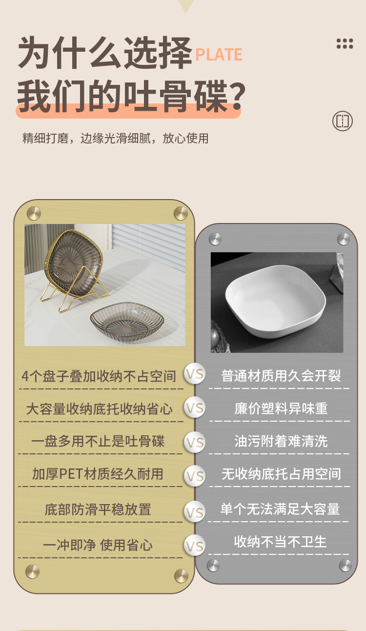 good-looking special tray taste eating bone dish side plate plastic plate living room light luxury snack dish