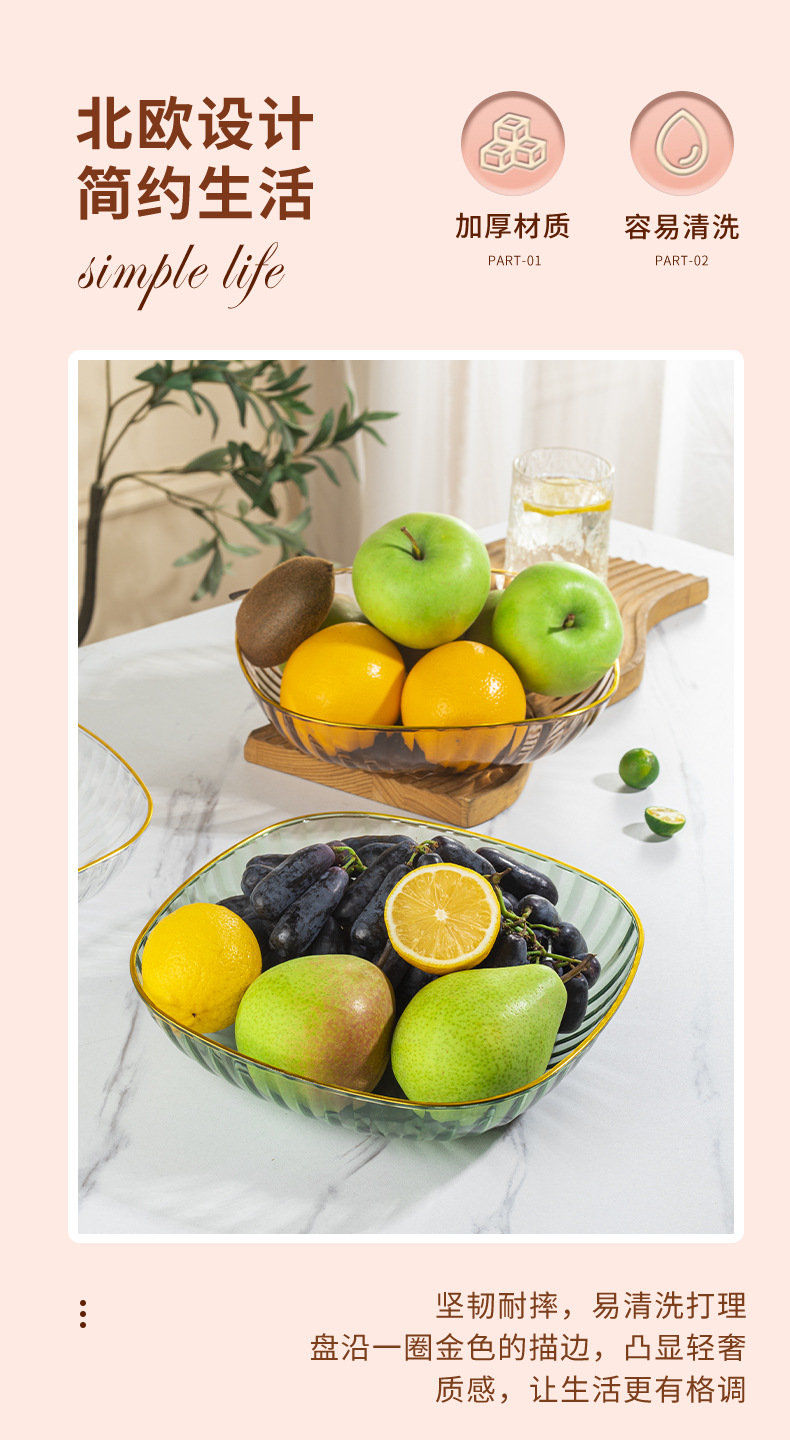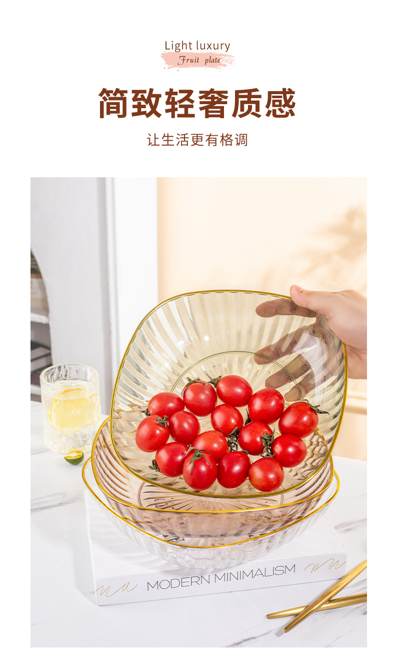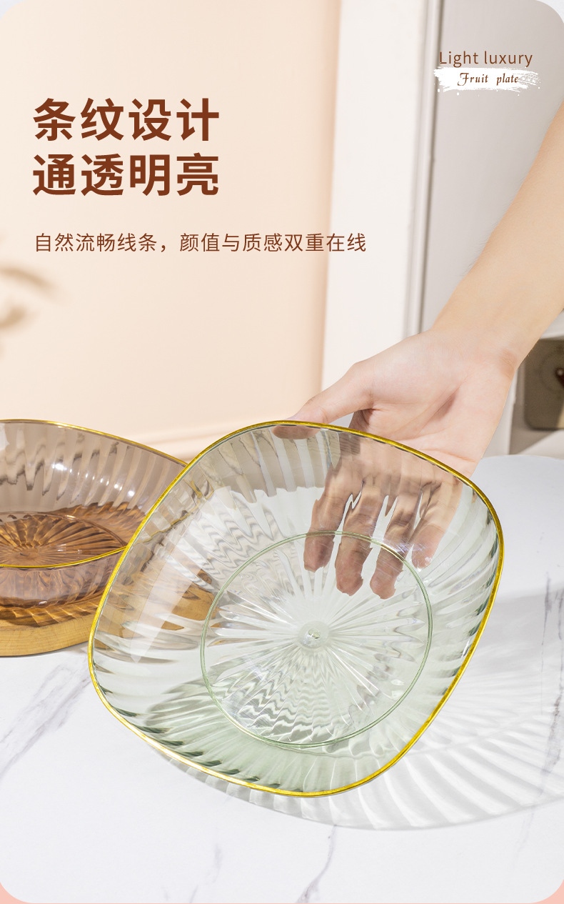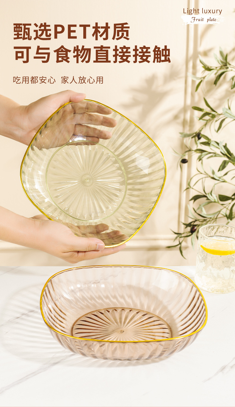 high-grade fruit plate household large tea table fruit plate pet plastic light luxury high-grade snack high-grade crystal plate