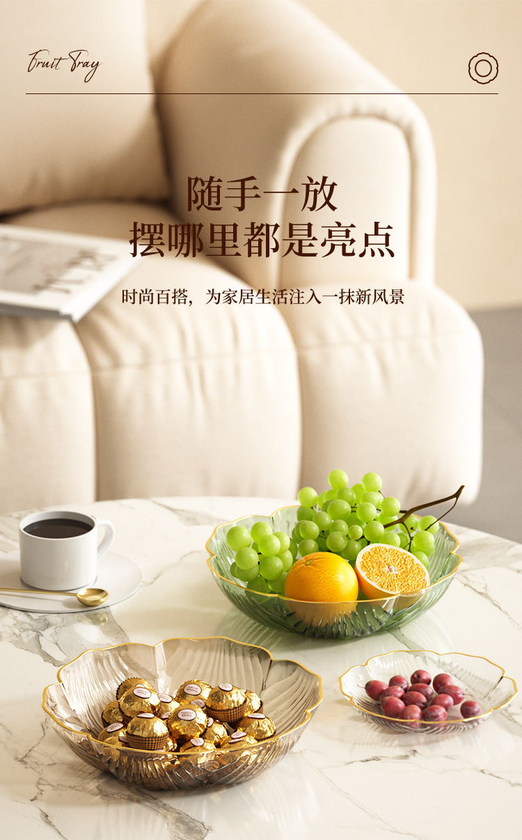 light luxury fruit plate high-grade household living room plate commercial melon seeds snack storage tray bone dish desktop fruit plate