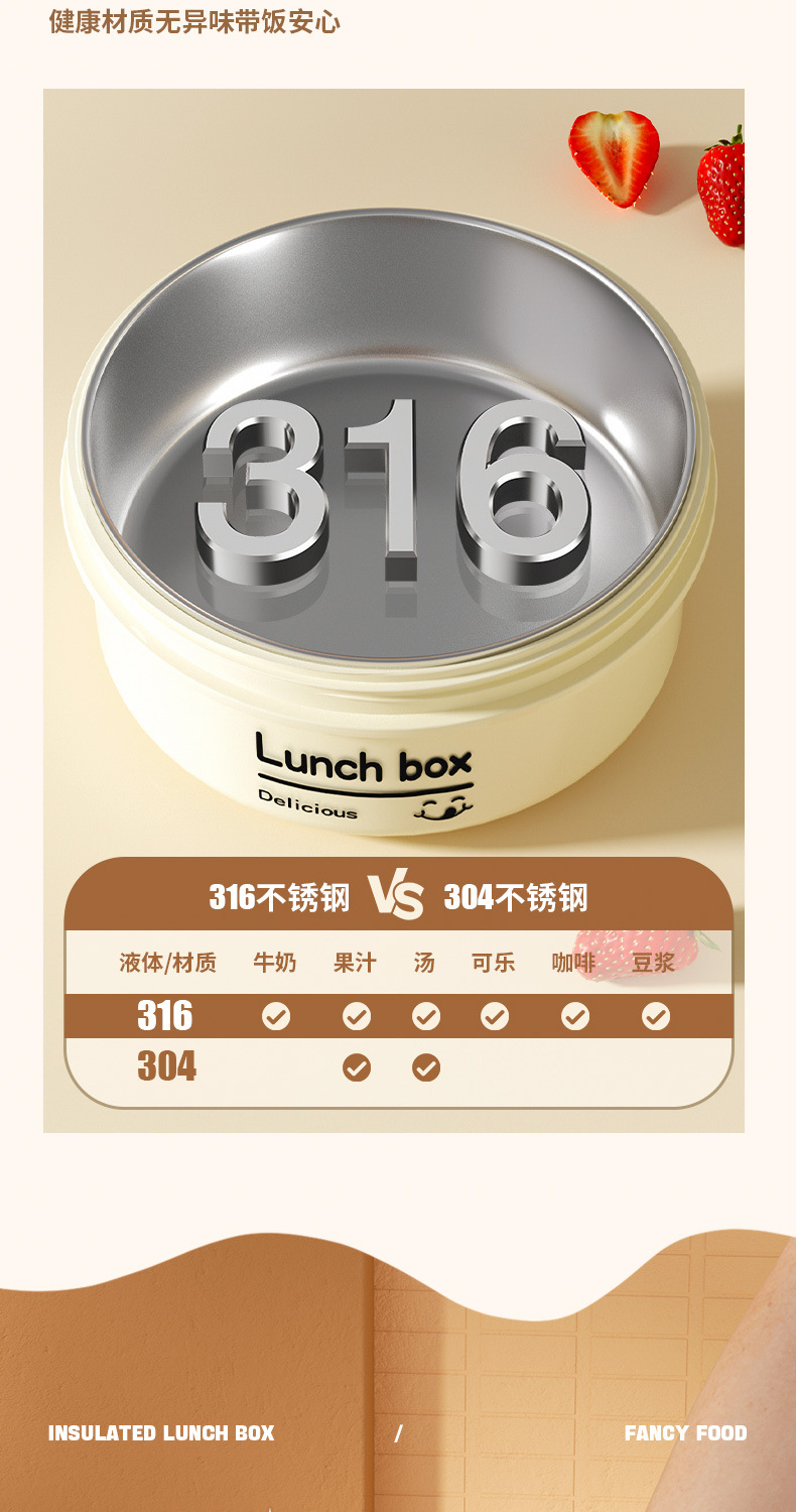 316 stainless steel insulated lunch box double-layer portable lunch box round multi-layer work student with cover sealed lunch box