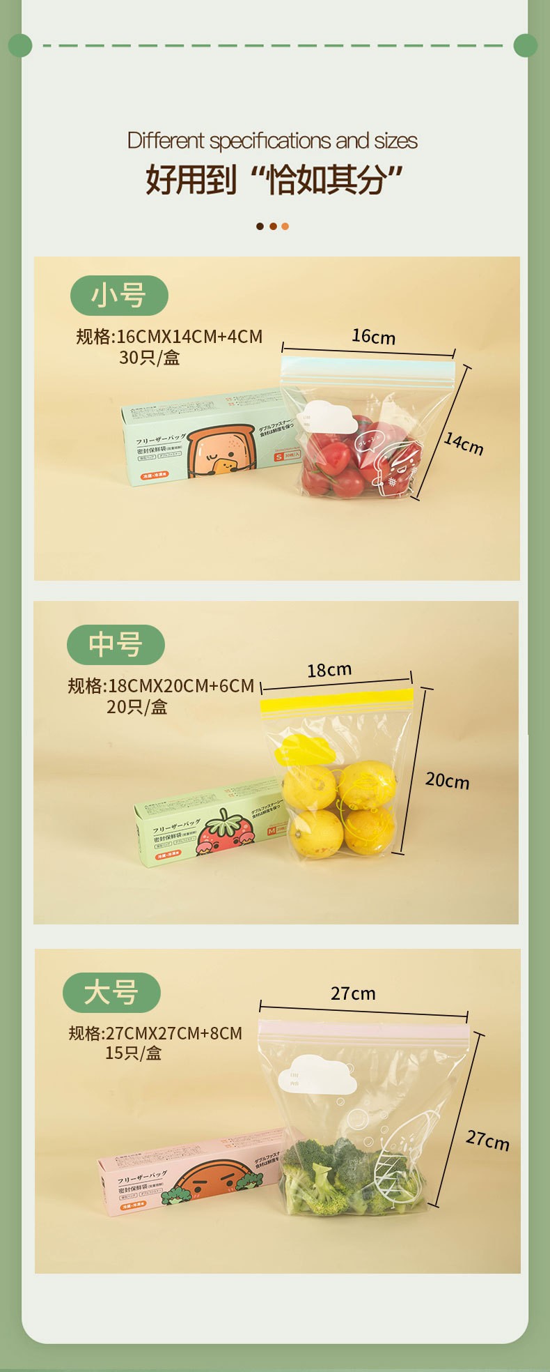 three boxes of 65 pieces (s + m + l)