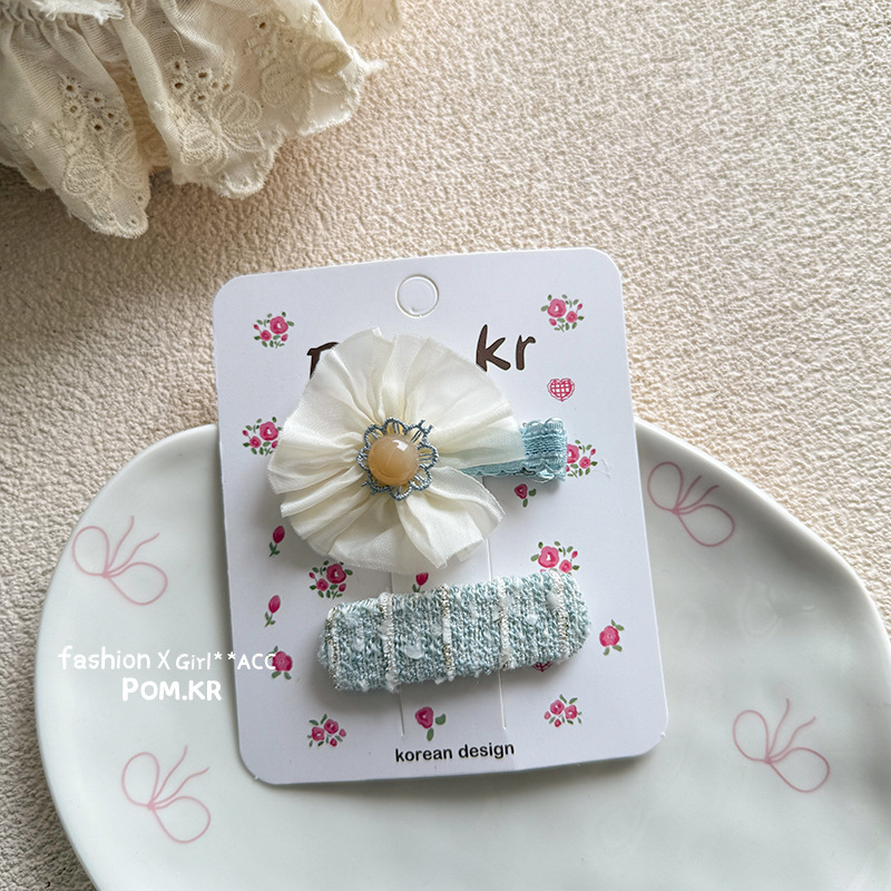 spring new bow flower fabric art floral children girl versatile sweet temperament ponytail hair ring side clip