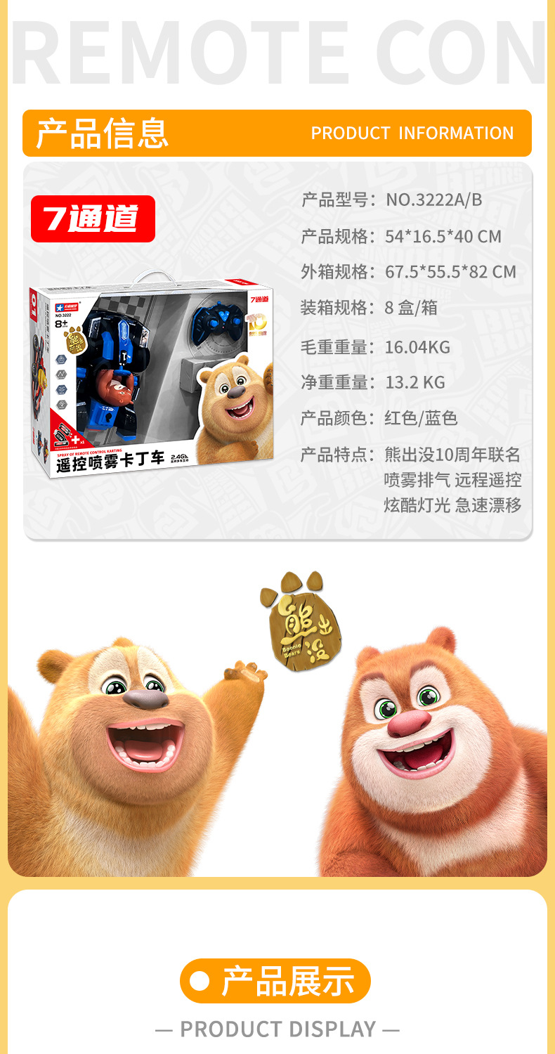 bear infested remote control spray kart (two-color mixed batch)