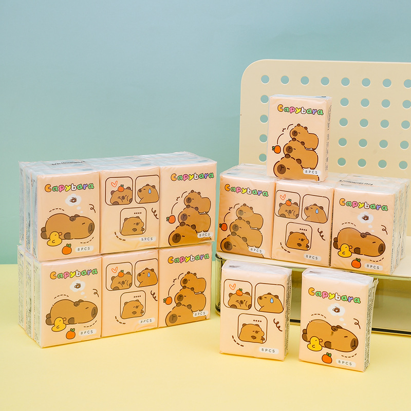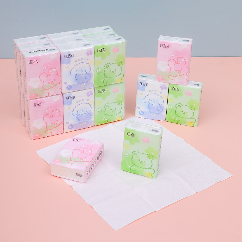 9 packs of 8 3-layer bear-like mini white paper handkerchief tissue