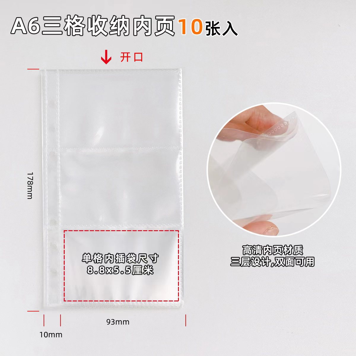 a6 horizontal three-grid inner page (10 pieces reduced)