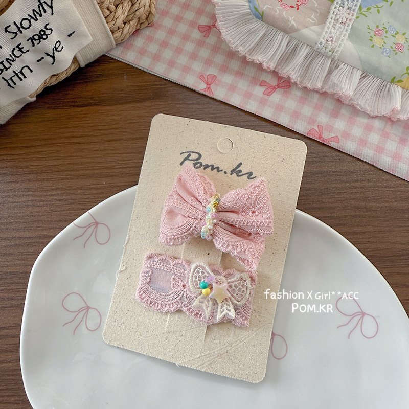 [5] pink bow barrettes