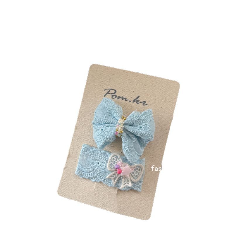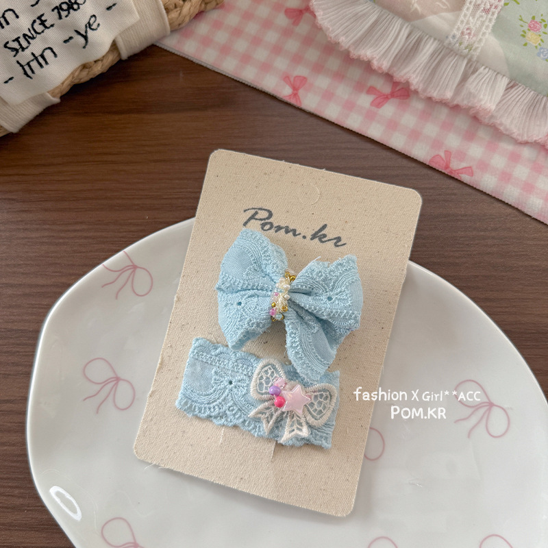 [6] blue color bow barrettes