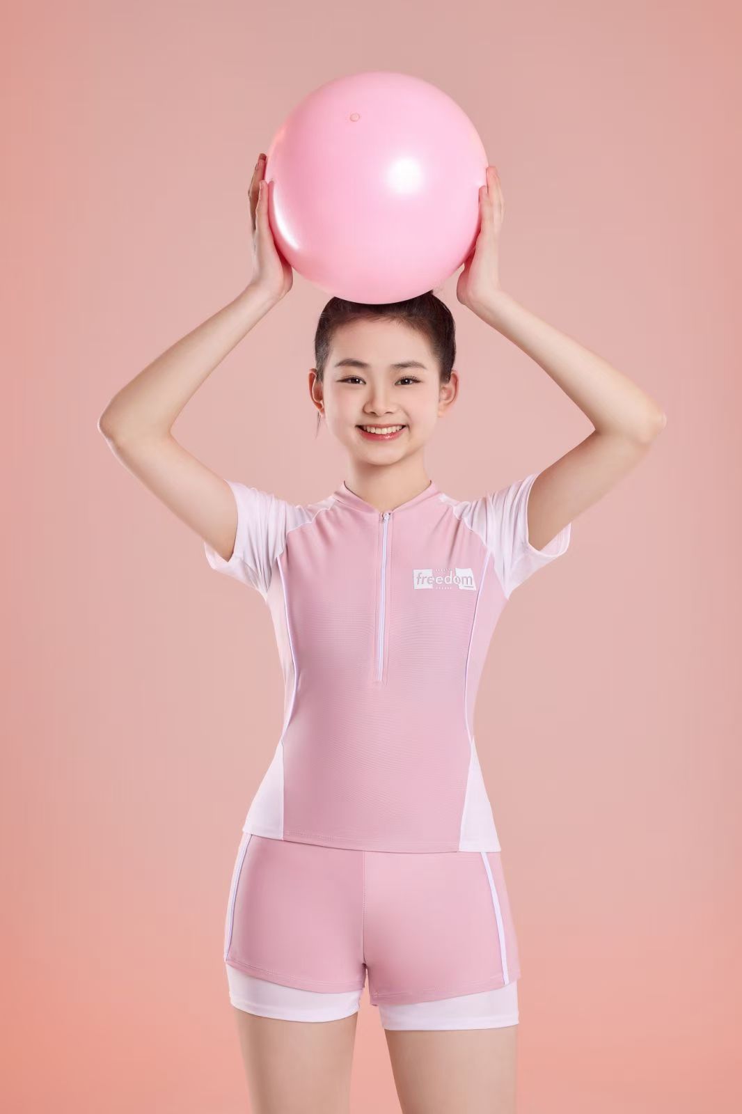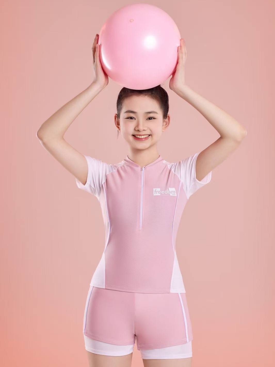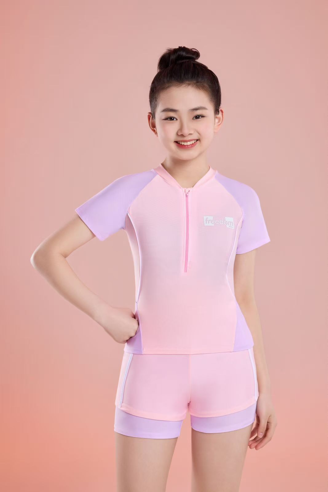 Girls' split two-piece swimsuit with polyester spandex fabric. Comfortable and with good elasticity. Suitable for ages 6-12.