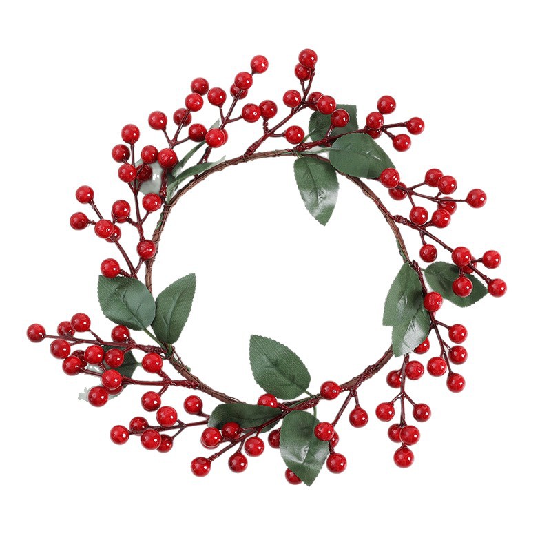 Red Fruit Flower Wreath: The foam flower wreath has a diameter of 19cm and is widest at 31cm. It has 15 small branches with red fruits, each branch has 7 fruits, and the diameter of each fruit is 1cm. The total weight is 46g.