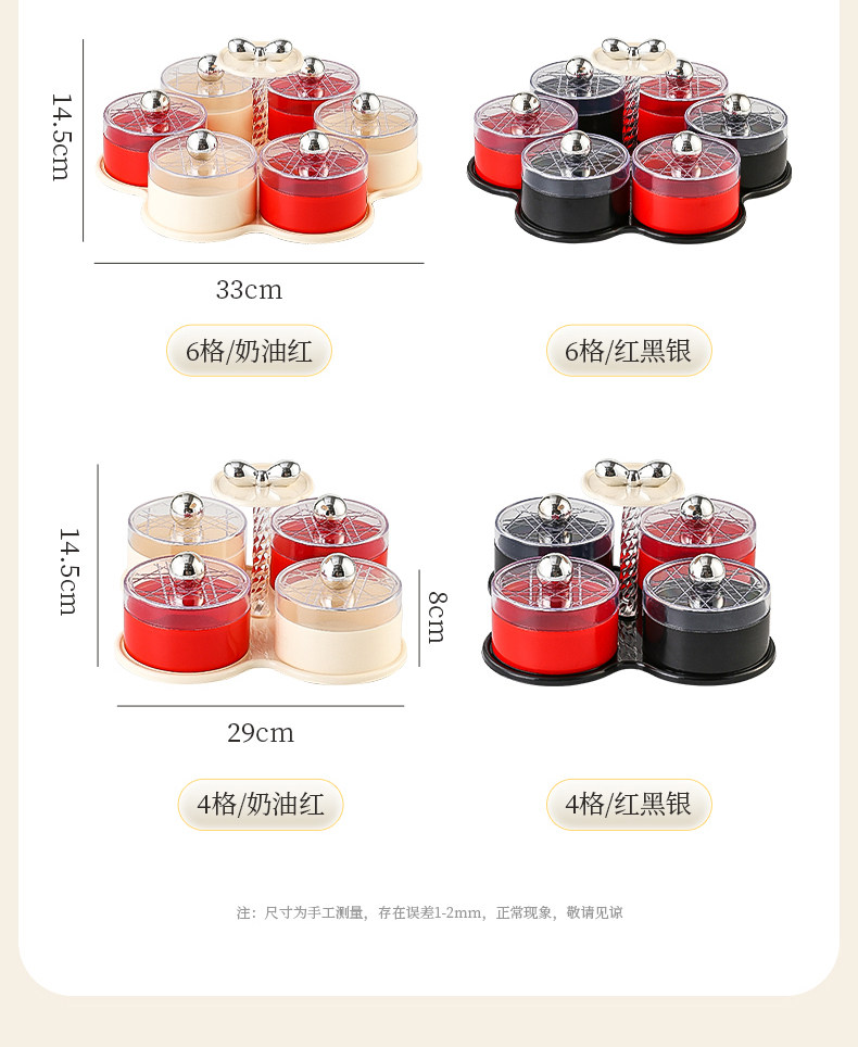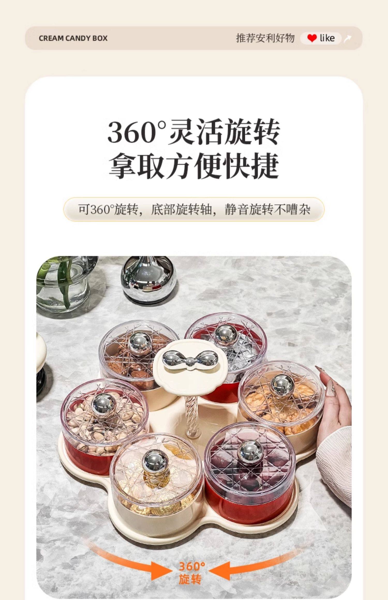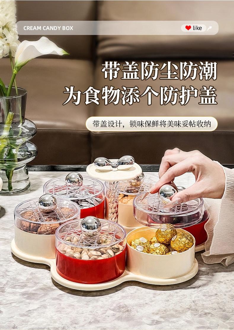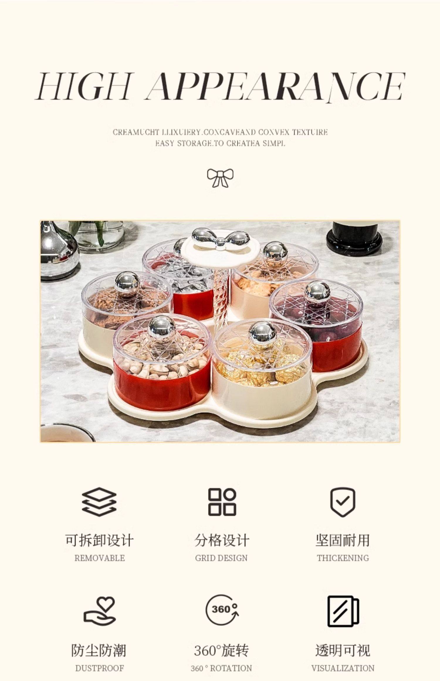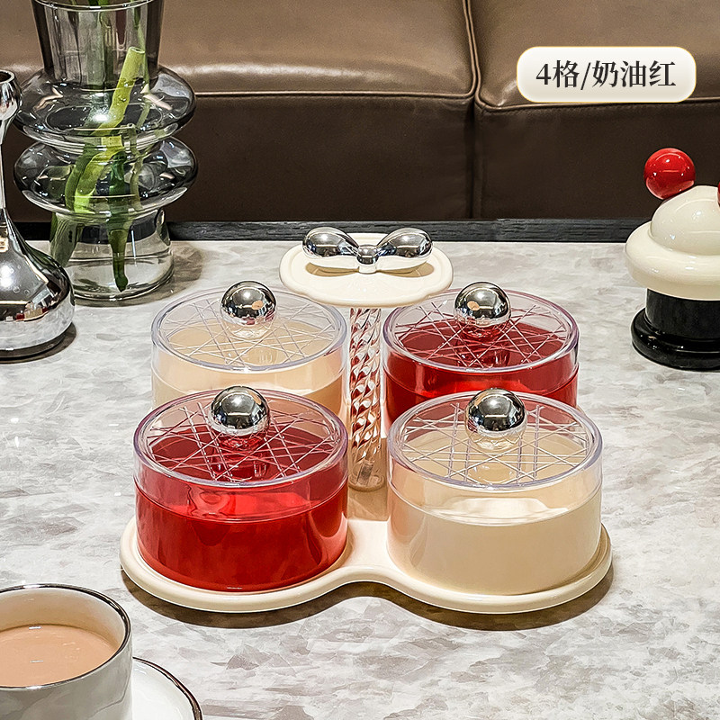 four grids/rotating dried fruit tray storage box (cream red)