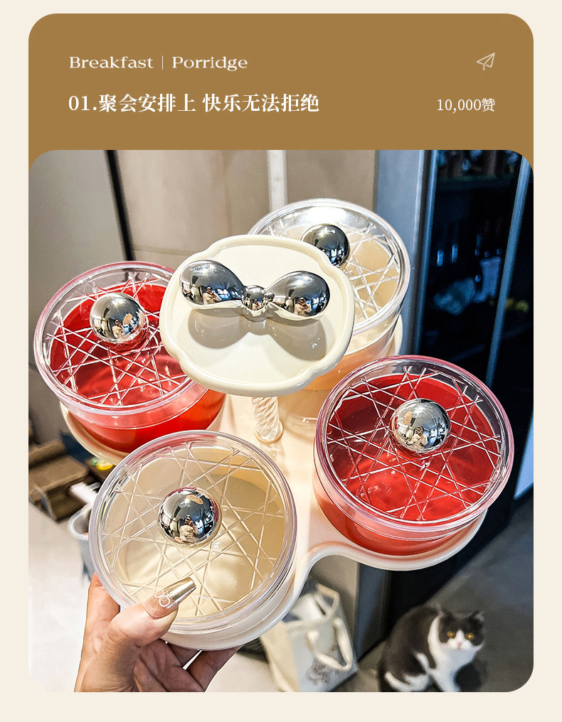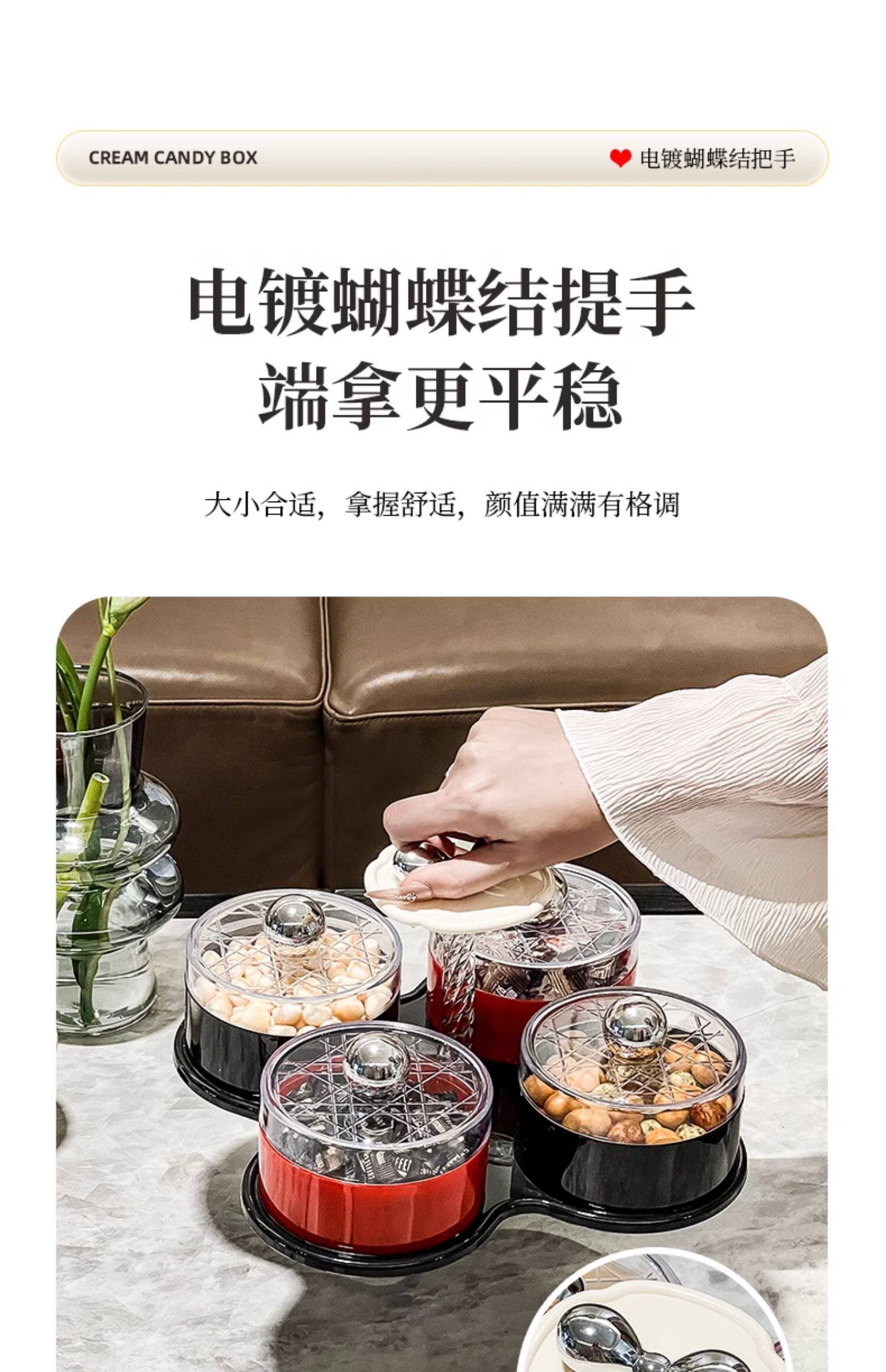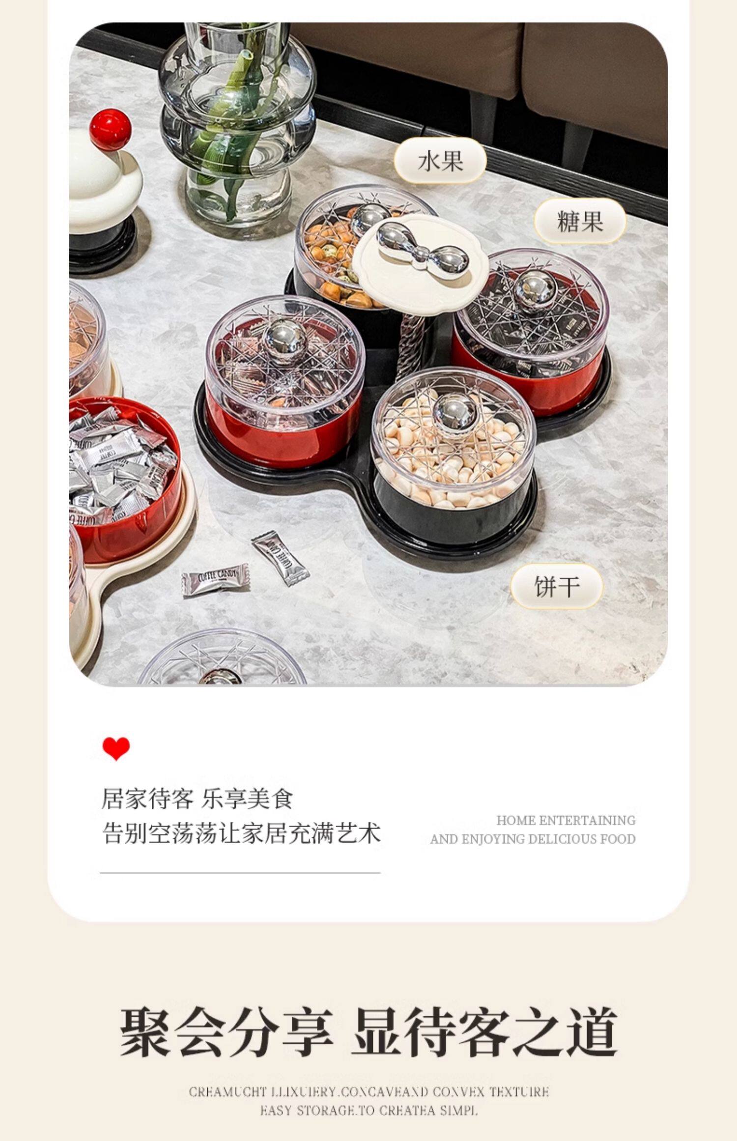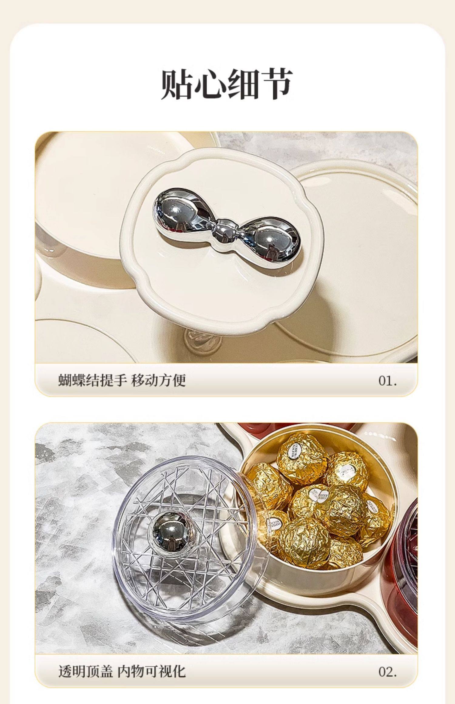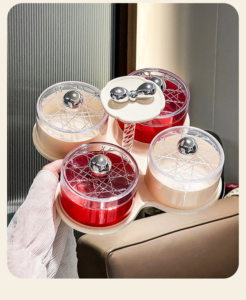 four grids/rotating dried fruit tray storage box (cream red)