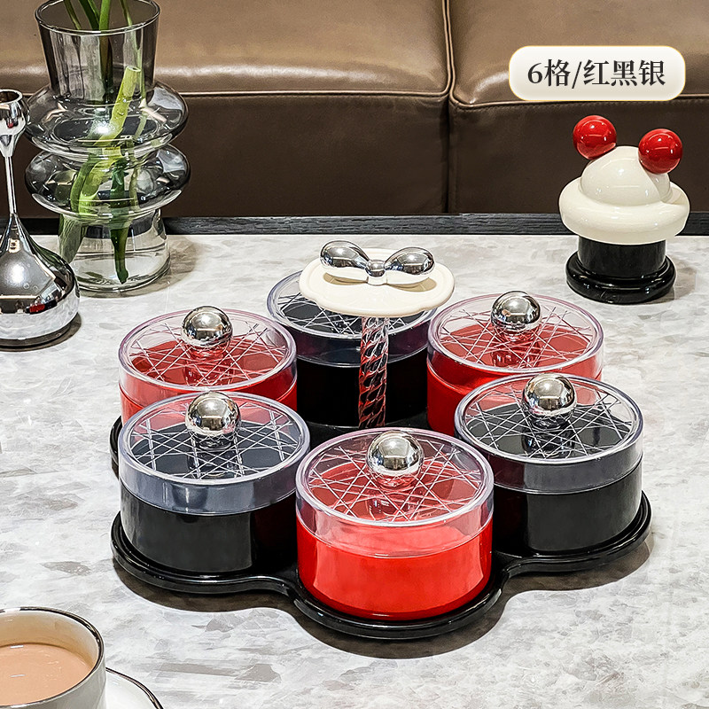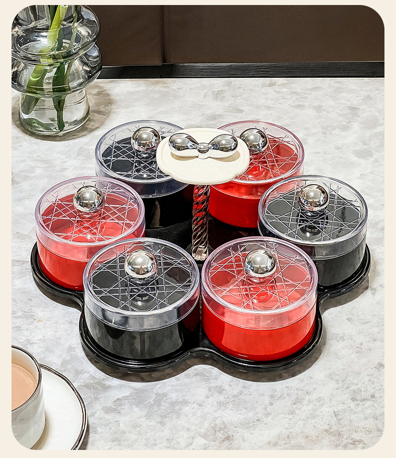 six grids/rotating dried fruit tray storage box (red, black and silver)