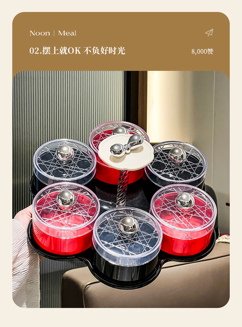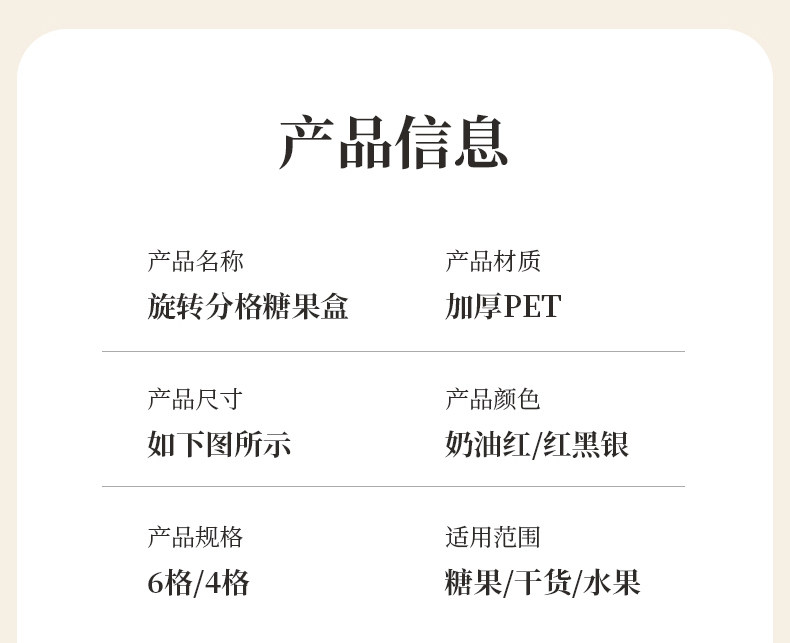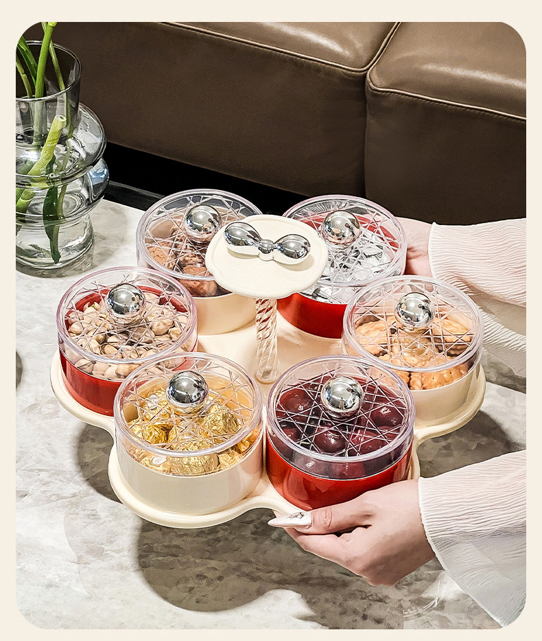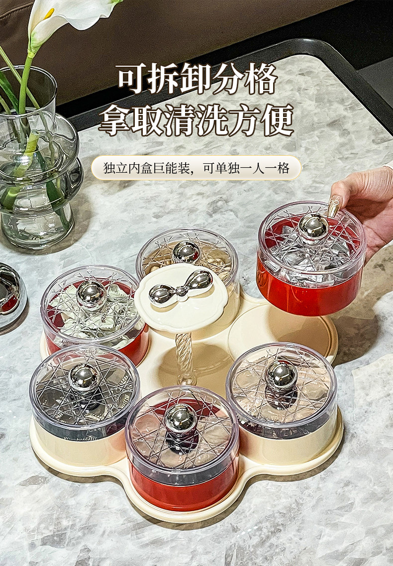 six grids/rotating dried fruit tray storage box (cream red)