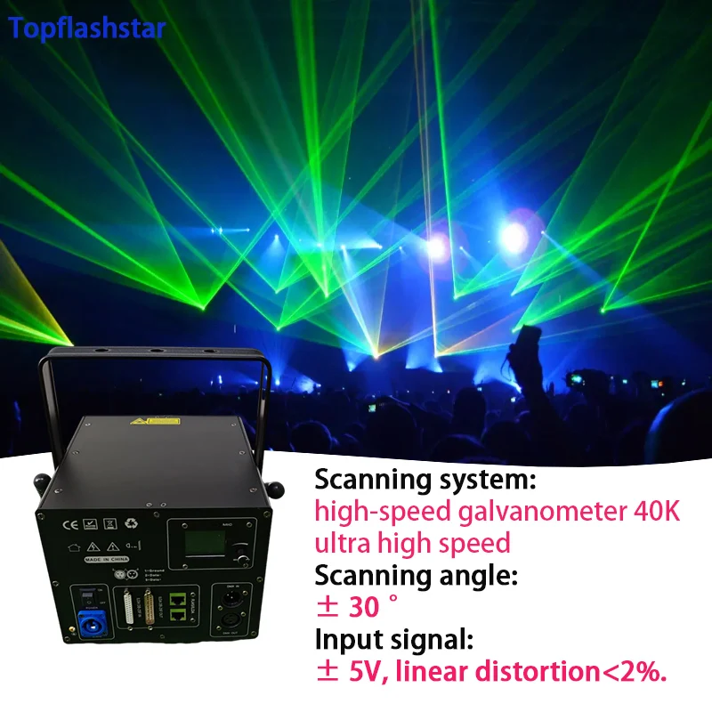 Control mode: voice control, self-propelled, master-slave, DMX512, SD card control, compatible with ILDA standard computer laser software