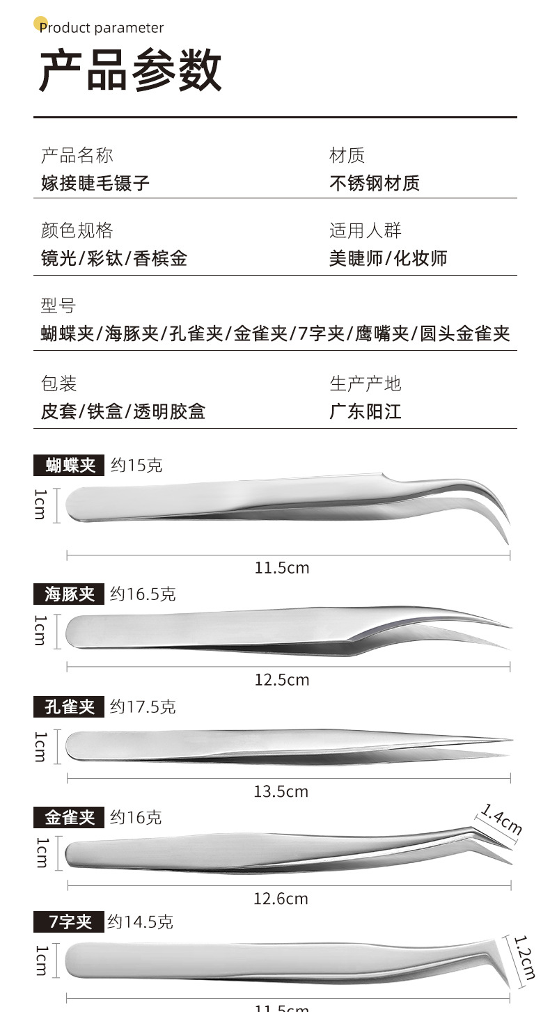 mirror light · long mouth jinyu tweezer (1.5mm thick)