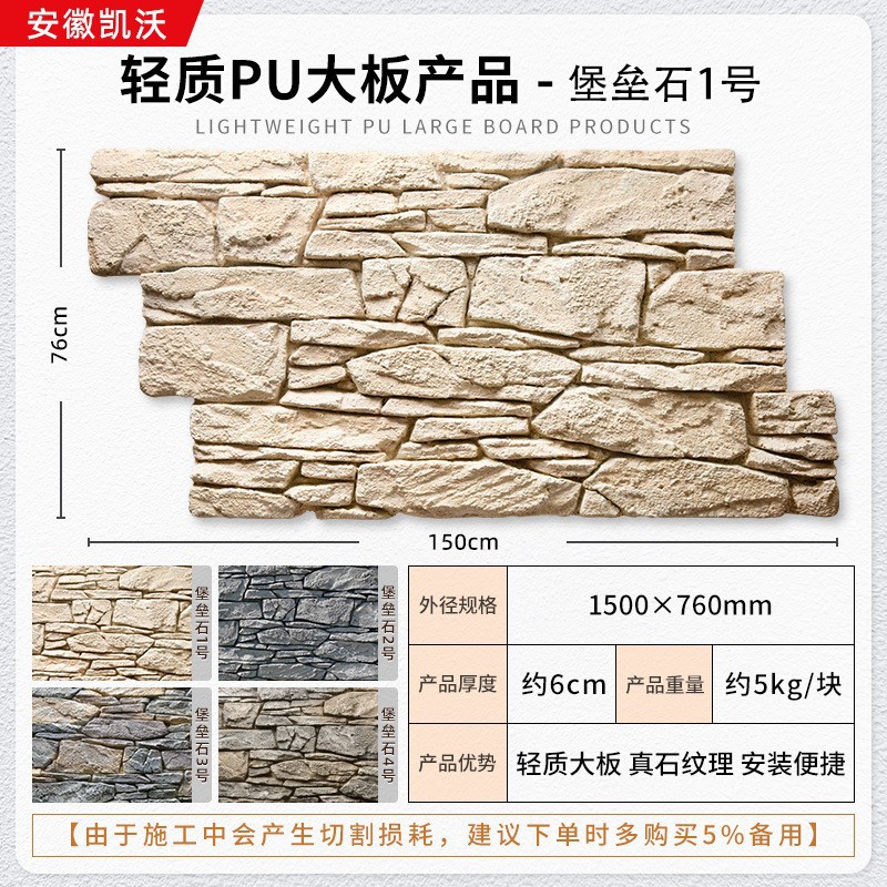 lightweight pu pastoral stone 1200 * 600mm