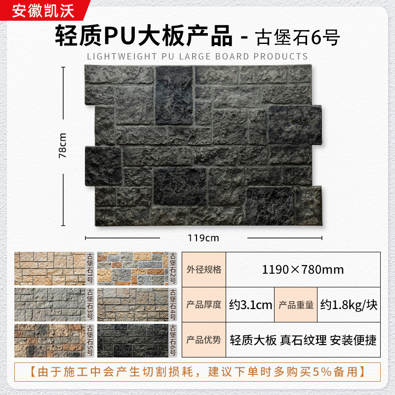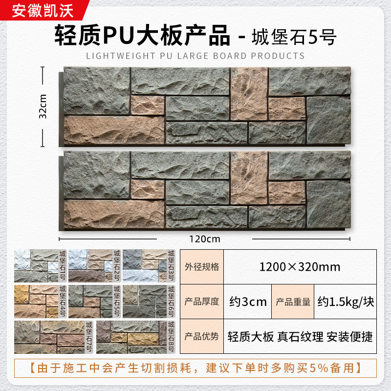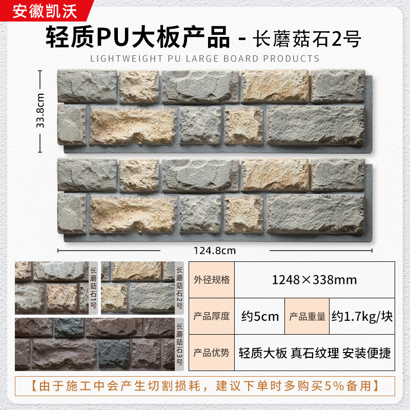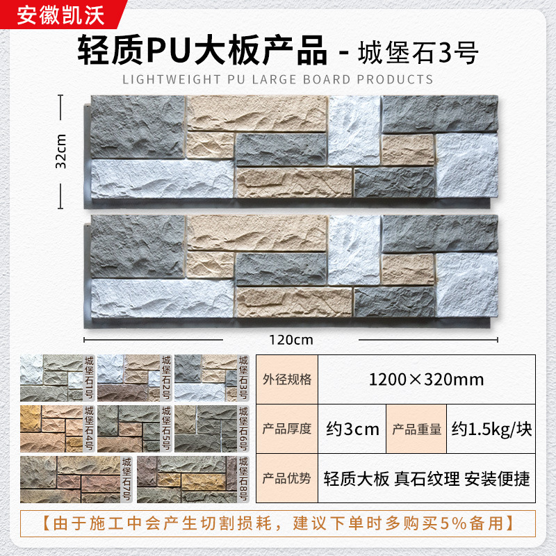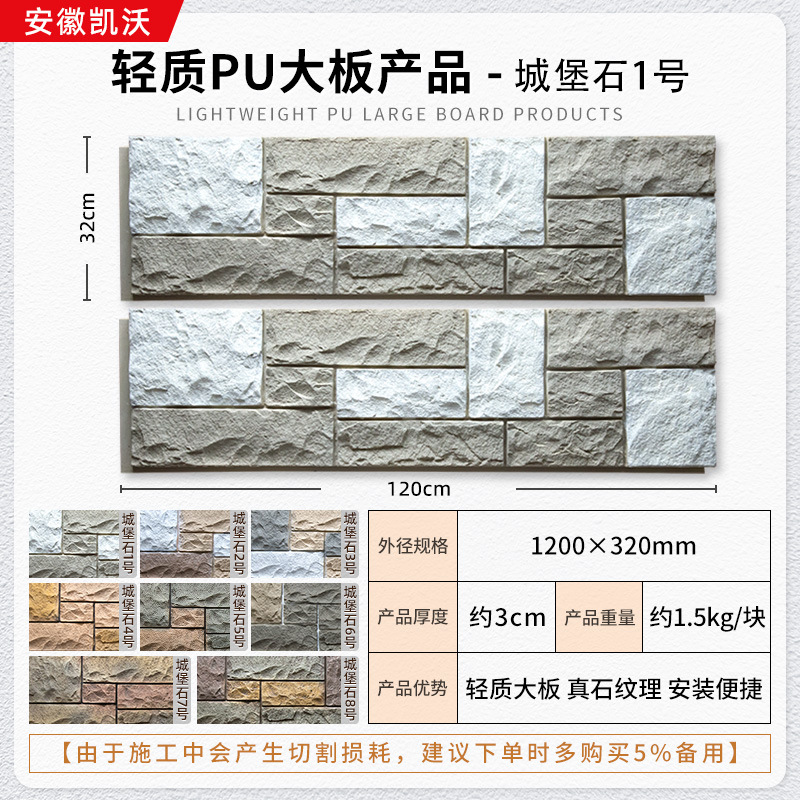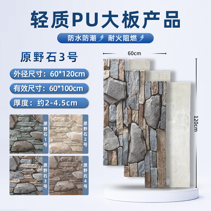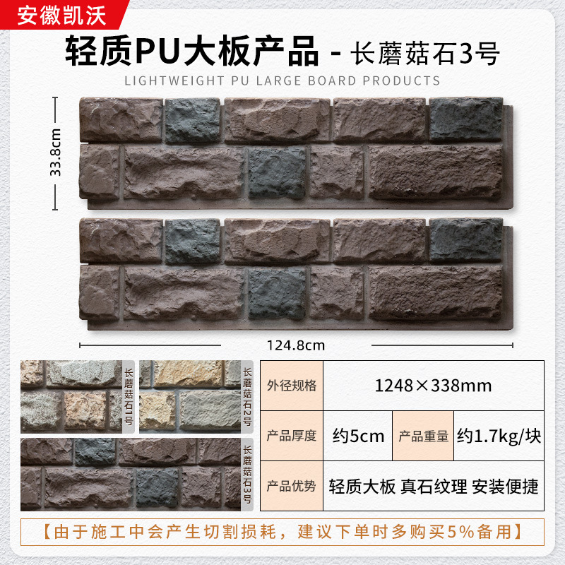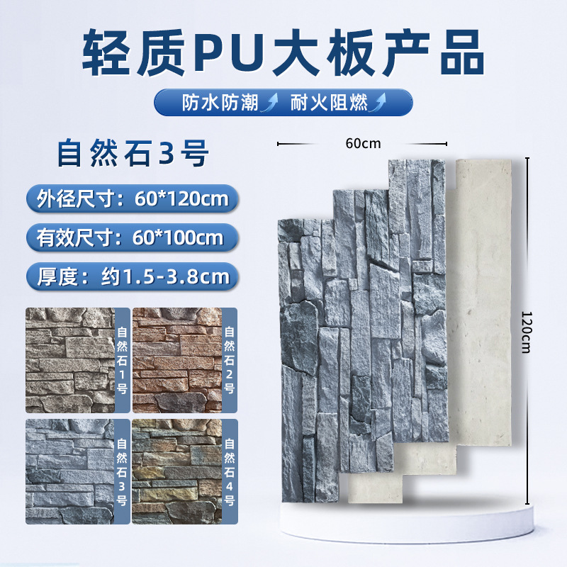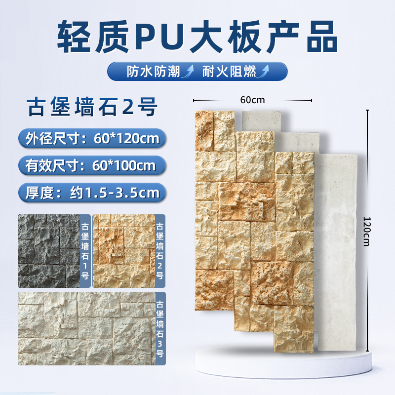 lightweight pu large board wall stone 1200 * 600mm