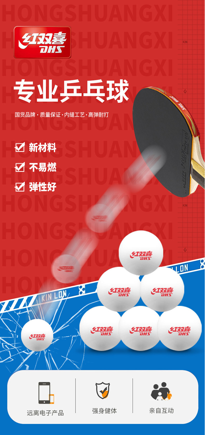 red double happiness training table tennis 1 (white)