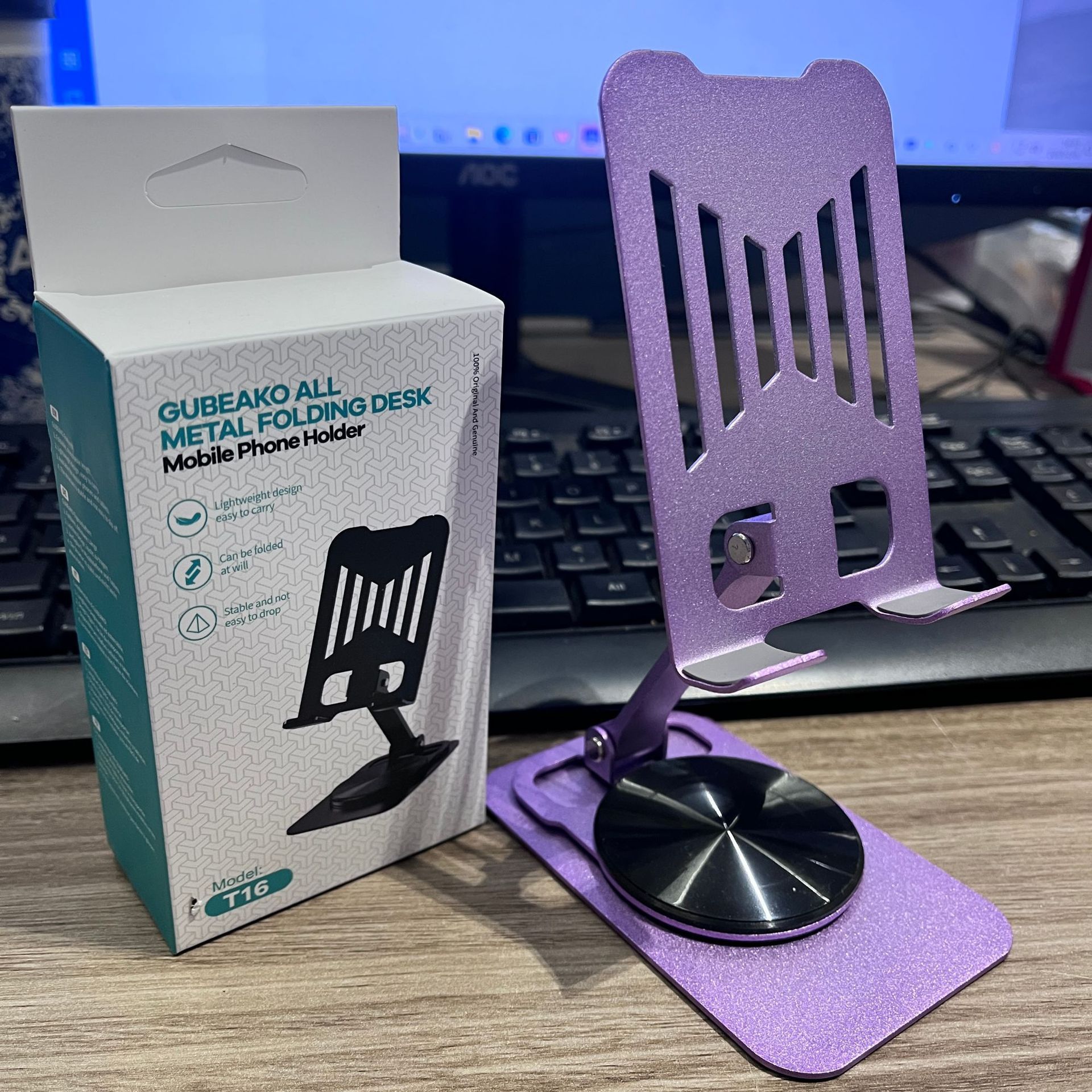 [purple aluminum] full alloy phone holder [360 rotation]]