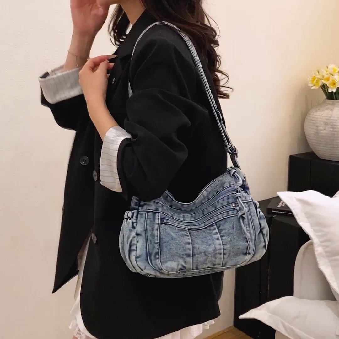idle style retro shoulder bag american lady versatile large capacity denim bag solid color simple elegant crossbody bag