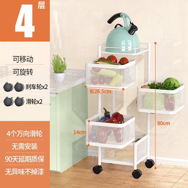 Kitchen storage rack with multiple levels, portable, and rotatable, no need for installation. Perfect for storing vegetables, fruits, and other kitchen items.
